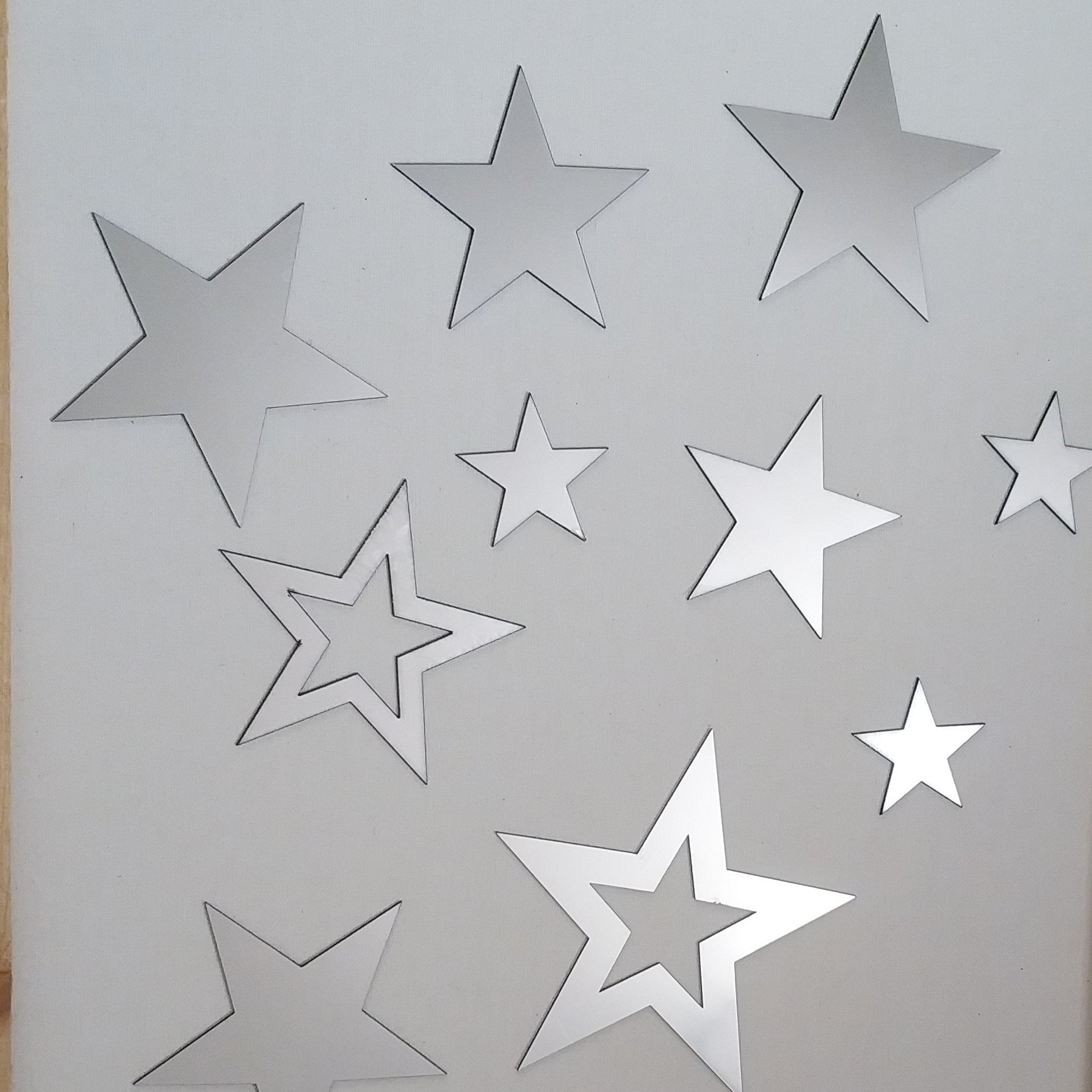 آینه دکوراتیو تزیینی،طرح ستاره،بزرگترین 15سانت وکوچکتر،بسته 20 عددی مبلمونسرا مدل 263291