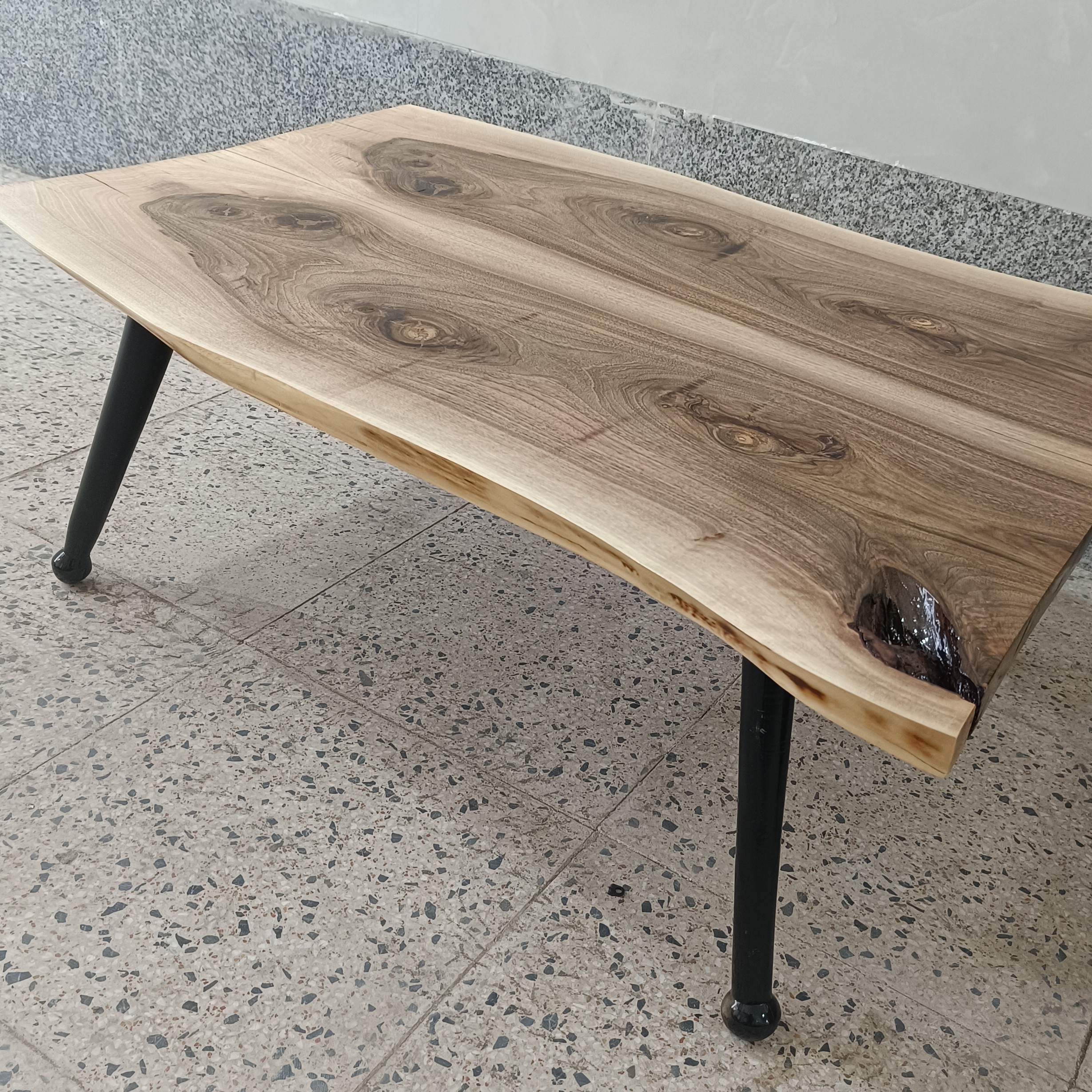 میز جلو مبلی چوبی چوب گردو پایه چوب مخروطی مشکی رنگ پوشش نیمپلی استر براق قیمت ذکر شده برای این ابعاد هست