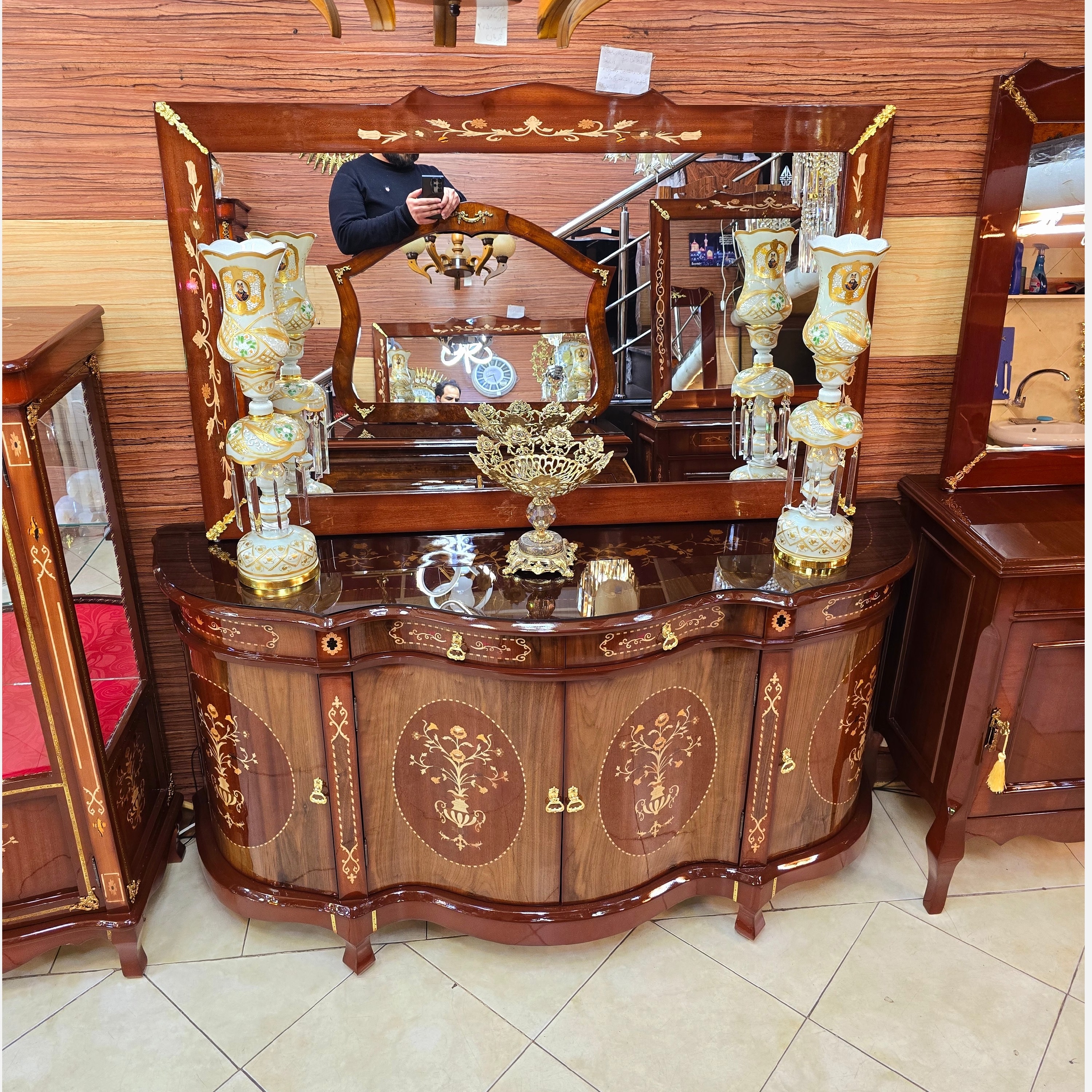 آینه و کنسول چهار درب معرق براق چوبی مبلمونسرا مدل 222306