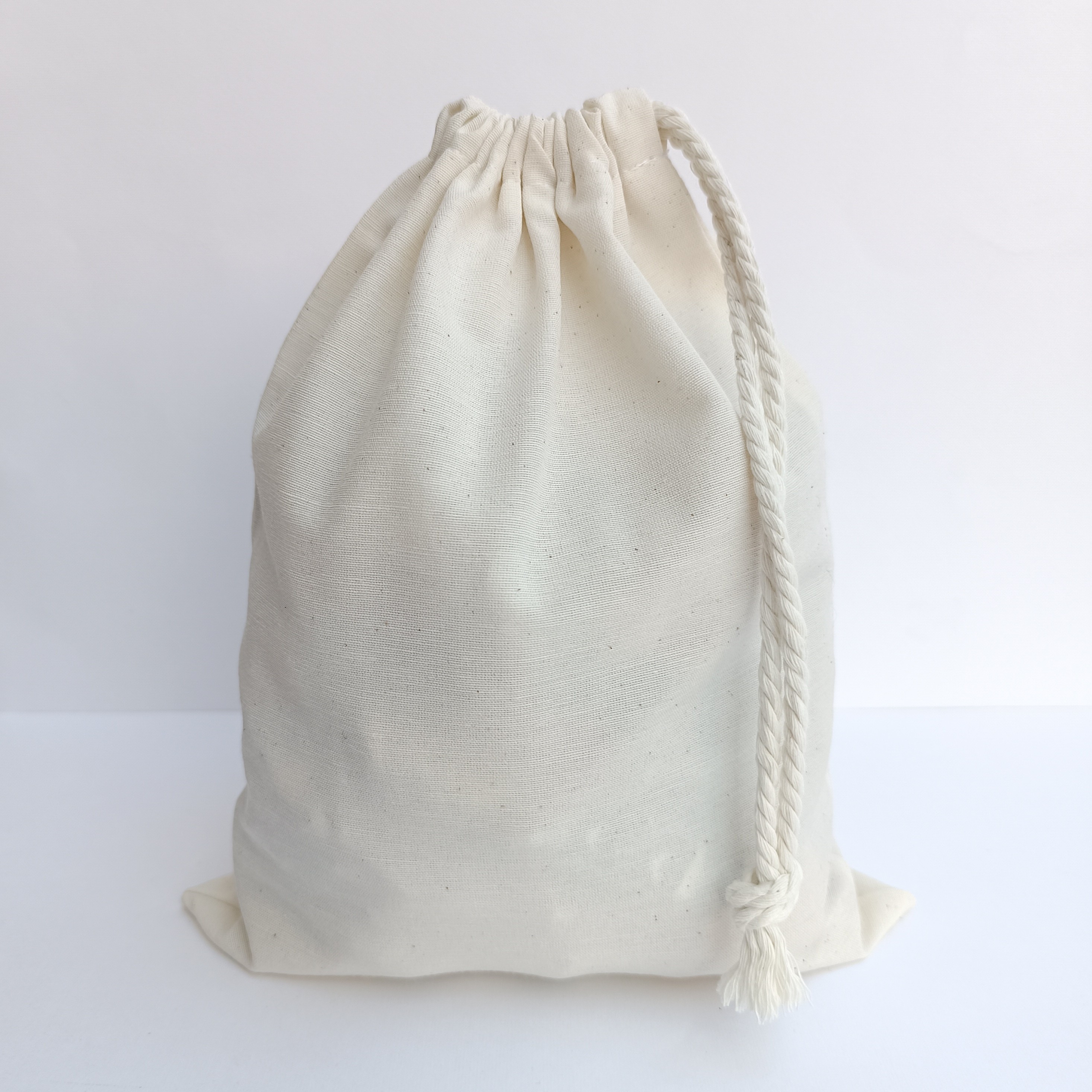 کیسهی پارچهای از جنس متقال با درصد پنبه بالا و ضخامت متوسط. سایز بطور تقریبی 15×12 اما تا حدود 1 سانت احتمال تفاوت سایز وجود دارد. کیسهها کمی آبرفت دارند. دهانهی کیسه با فشار دست جمع میشود. و توصیه میکنم قبل از سفارش برای اطمینانِ بیشتر اندازههایی که گفته شده رو خودتون داخل منزل با متر چک کنید که حد و حدود سایزهایی که گفته شده براتون مشخص باشه. اگر نیاز به توضیحات بیشتری هست در قسمت گفتگو در خدمتم.