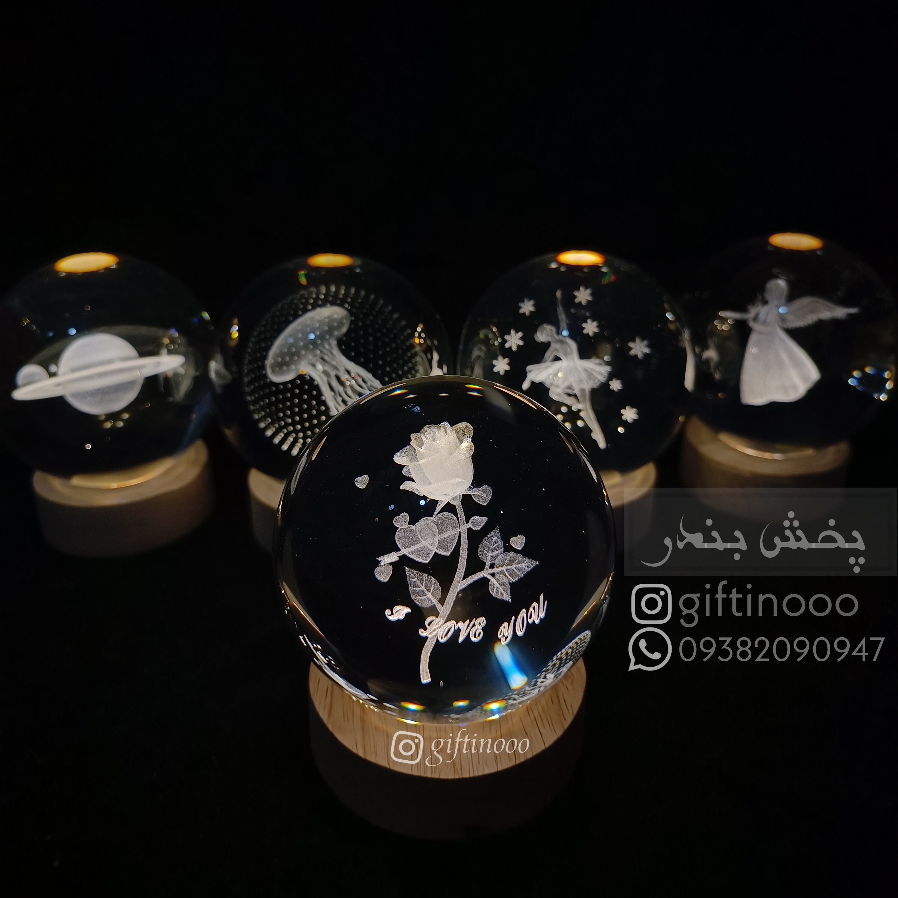 گوی کریستالی طرح گل رز قطر8سانتی متر مبلمونسرا مدل 234352