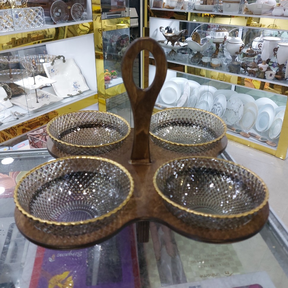 ظروف پذیرایی 4 تایی چوبی و لب طلا مبلمونسرا مدل 276185