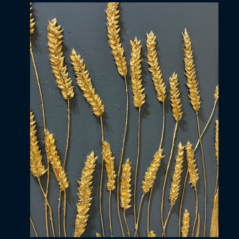 تابلو نقاشی گندم فوق برجسته این تابلو زیبا تماما کار دست هست با خمیر تکسچر سرامیک برجسته سازی شده اونم توسط دست کار شده با ورق طلا درجه یک کار شده روی بوم نقاشی سایز 80در 80 عکس دوم از نزدیک گرفته شده حتما ظرافت کار ببین