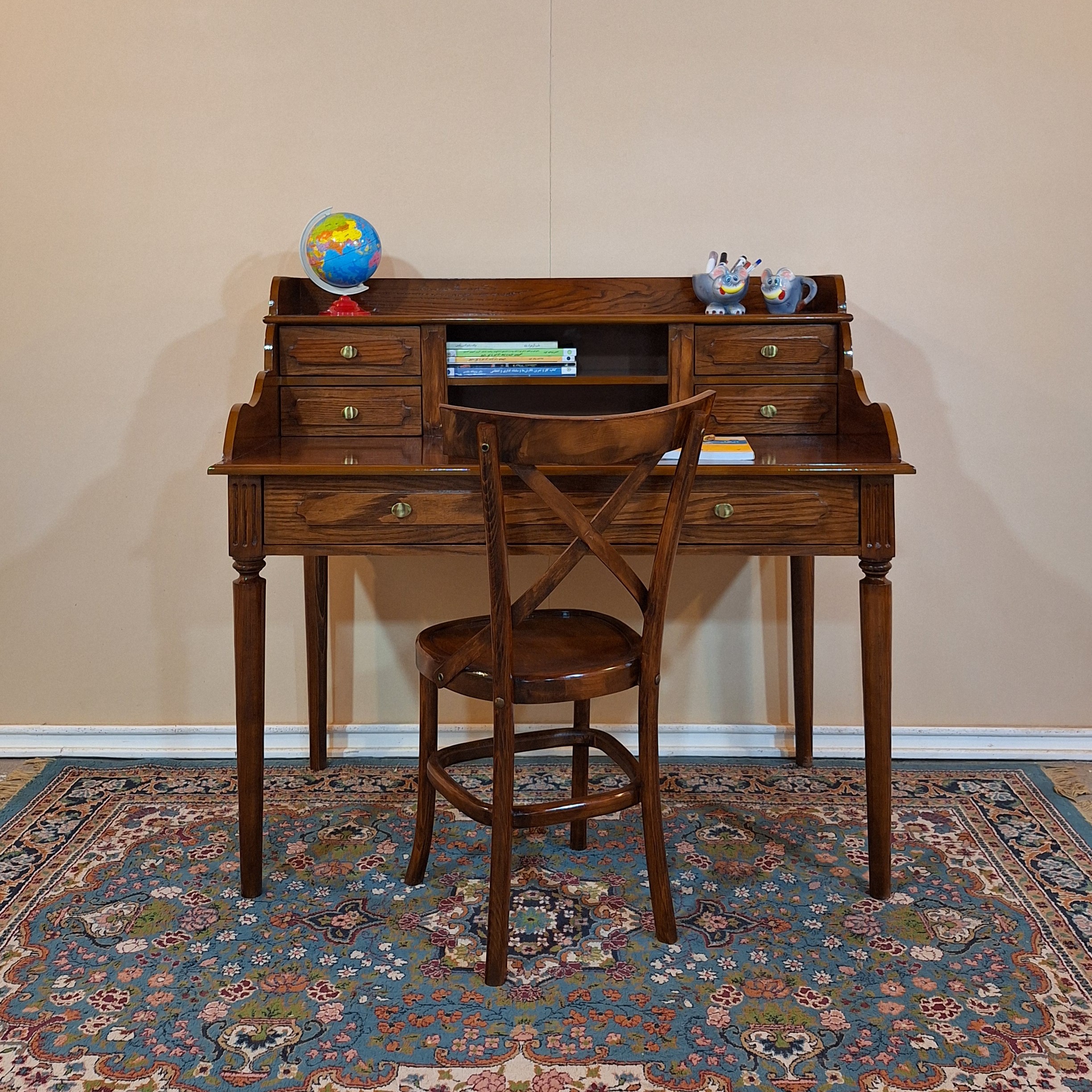میزتحریر کلاسیک با صندلی ضربدری مبلمونسرا مدل 220290