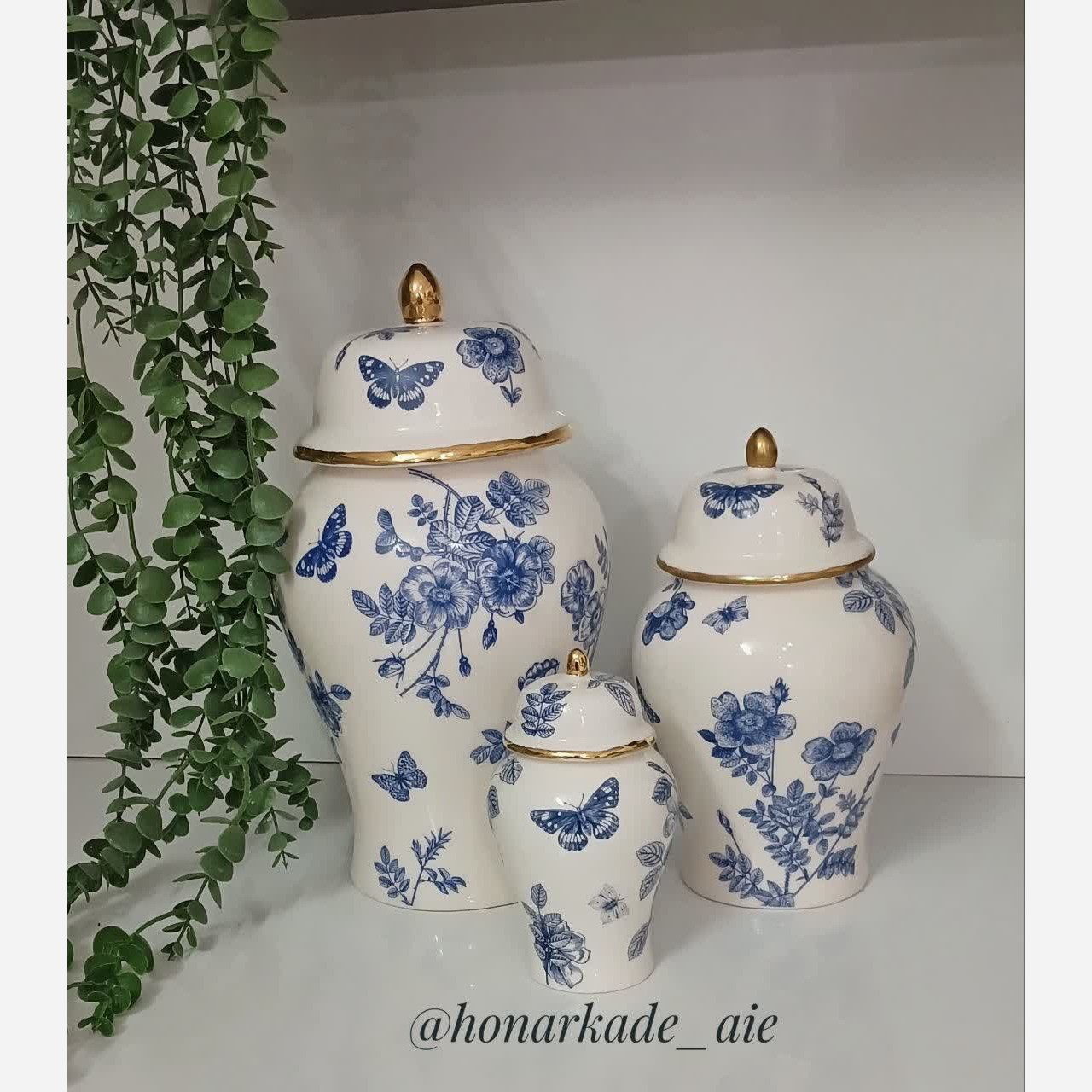 ست سه تایی جینجر جار سرامیکی مدل گل ابی