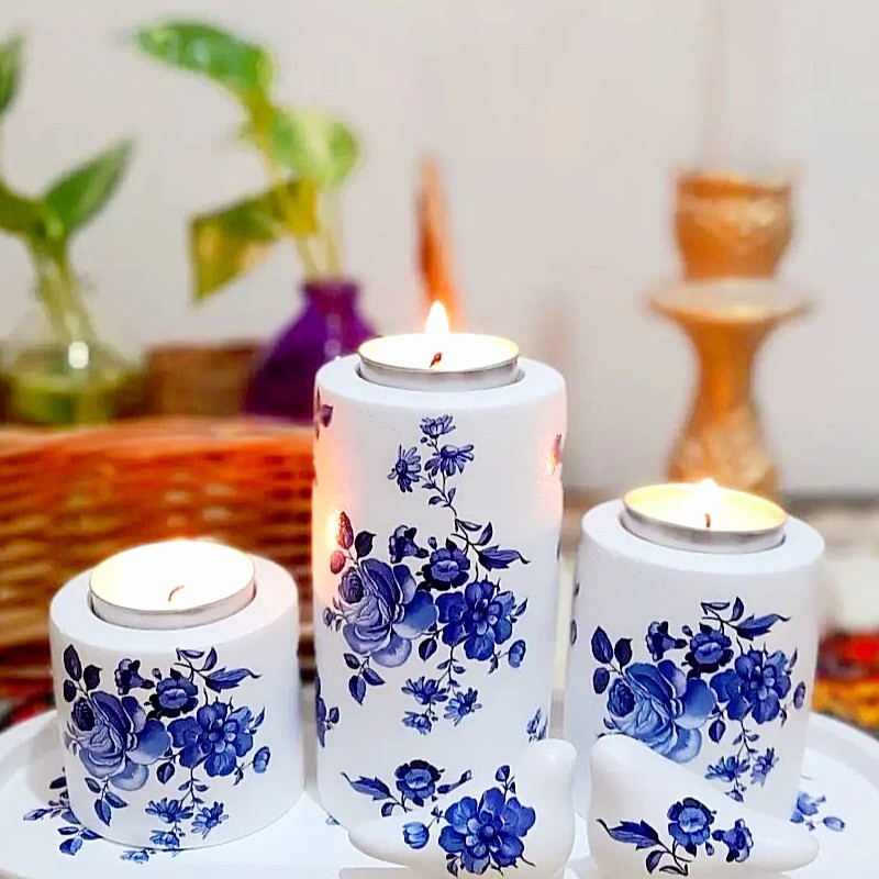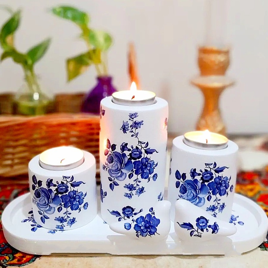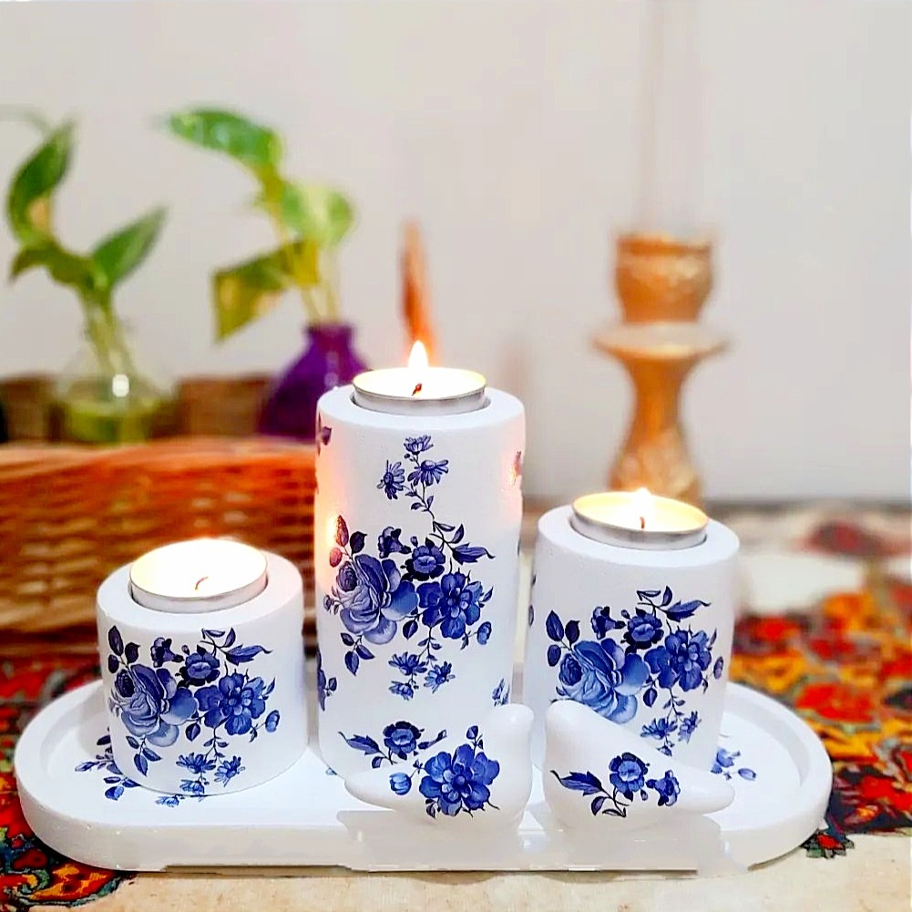 جای شمع وارمر3تیکه قلم آبی جذاب هنر آفتاب مبلمونسرا مدل 280014
