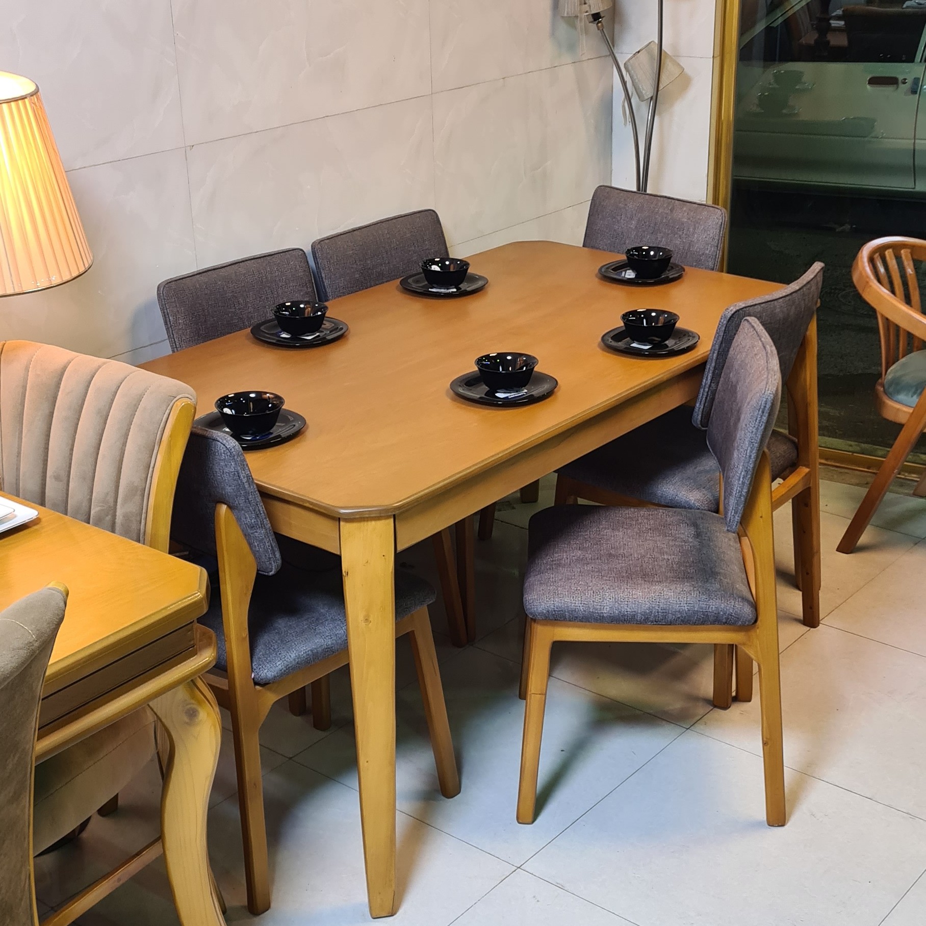 میز و صندلی ناهار خوری 6 نفره مدله فاما یه مدل مینیمالو جمعه جور 🔴جنس صفحه میز : MDF روکش راش 🔴جنس پایه میز : صددرصد چوبه روس 🔴پایه میز پیچو مهره ای است و قابلیت بازو بسته شدن دارد 🔴ابعاد صفحه میز : 160×90 سانتیمتر 🔴ارتفاع میز: 80 سانتیمتر 🟢جنسه چوب صندلی : صددرصد چوب روسی 🟢پارچه : به انتخاب مشتری قابل تغییر است 🔴برای تغییره رنگه چوب و پارچه 10 روز کاری زمان لازمه 🟢هزینه و باربری و اسنپ به عهده مشتری عزیز میباشد🌹❤️