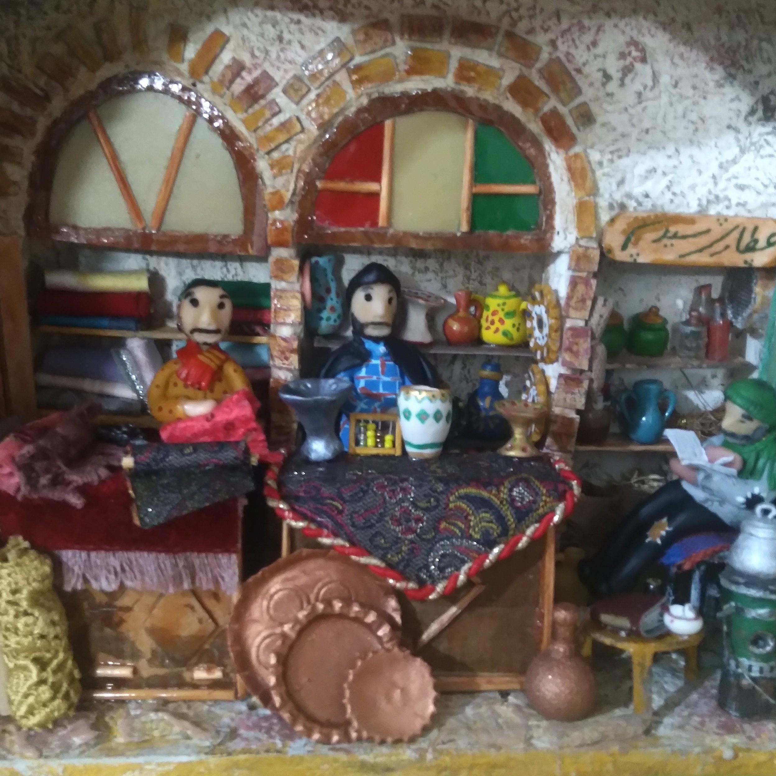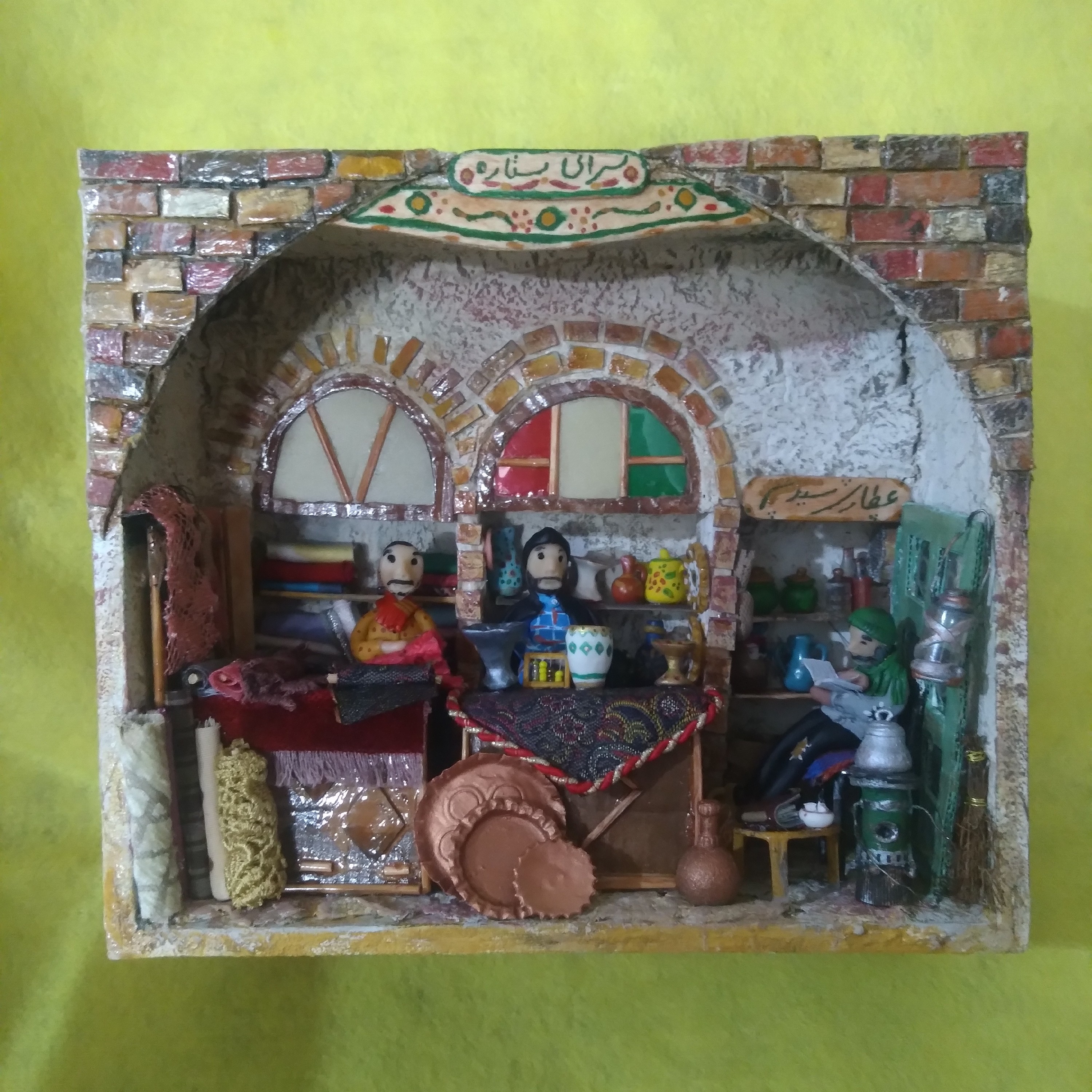 مغازه عطاری ظروف تزیینی پارچه فروشی ماکت بازارچه قدیمی دیوارکوب تابلو دستساز محصولی از ستاره چوبی مبلمونسرا مدل 277185