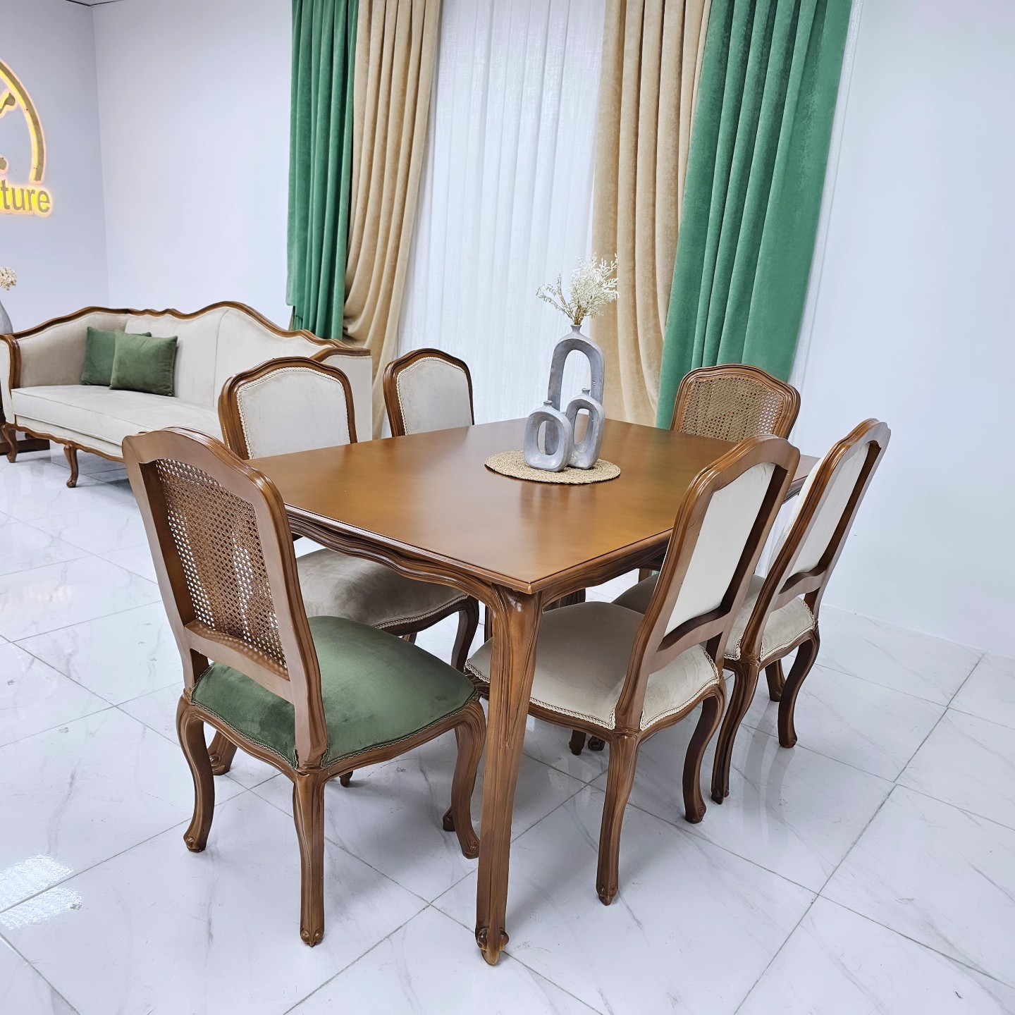 مبل 8نفره با غذاخوری 6 نفره تمام چوب راش کف پیک فوم سرد پارچه مخمل دیاموند بدنه اسفنج 30 کیلویی