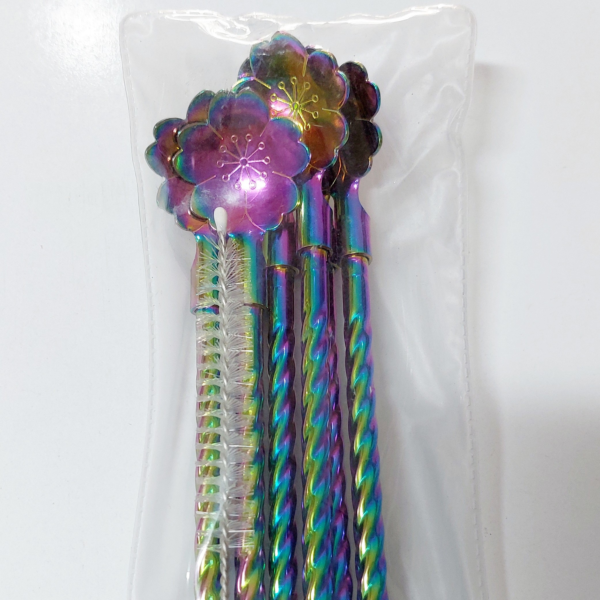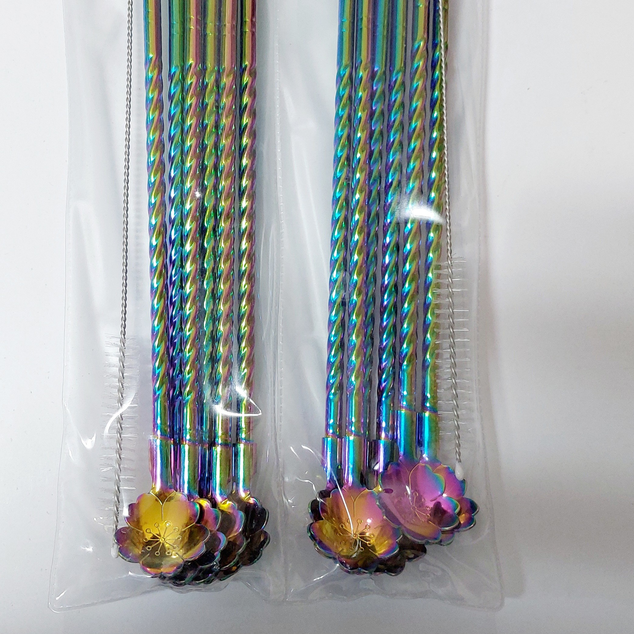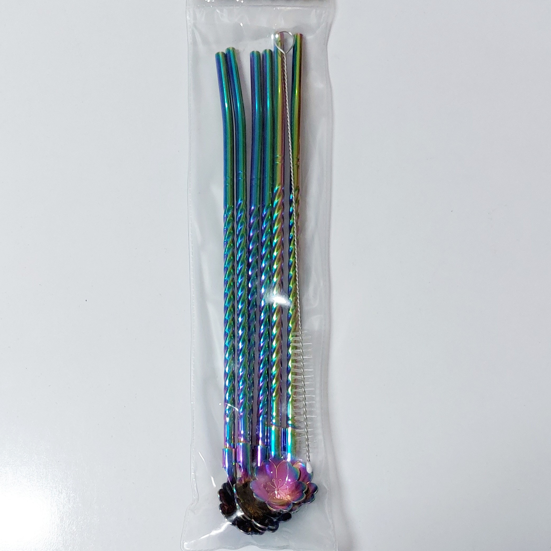 نی شربت خوری ک هم نی هس و هم قاشق شربت خوری استیل هفت رنگ استیل نگیر درجه 1 کیفیت عالی مارک یونیک لایف 6 عدد نی وقاشق و یه عدد فرچه نی شور و هم زن
