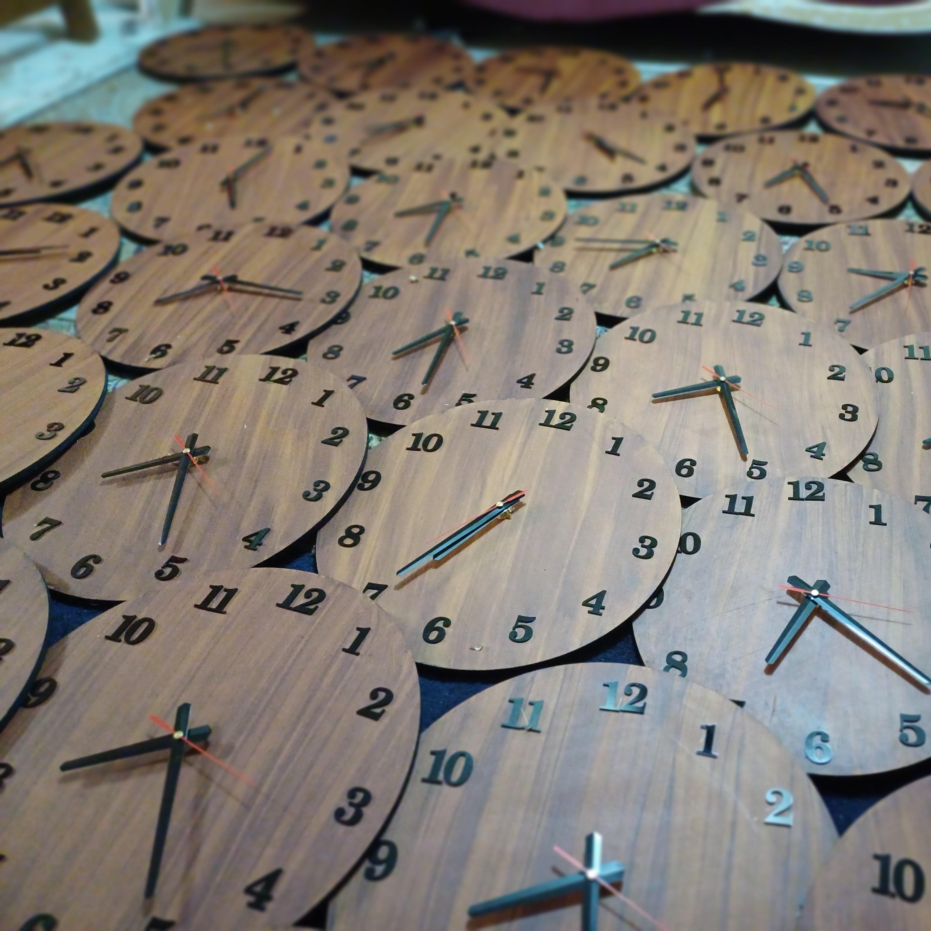 ساعت دیواری با بیس ام دی اف و طرح چوب با قطر 40 سانت.موتور آرامگرد