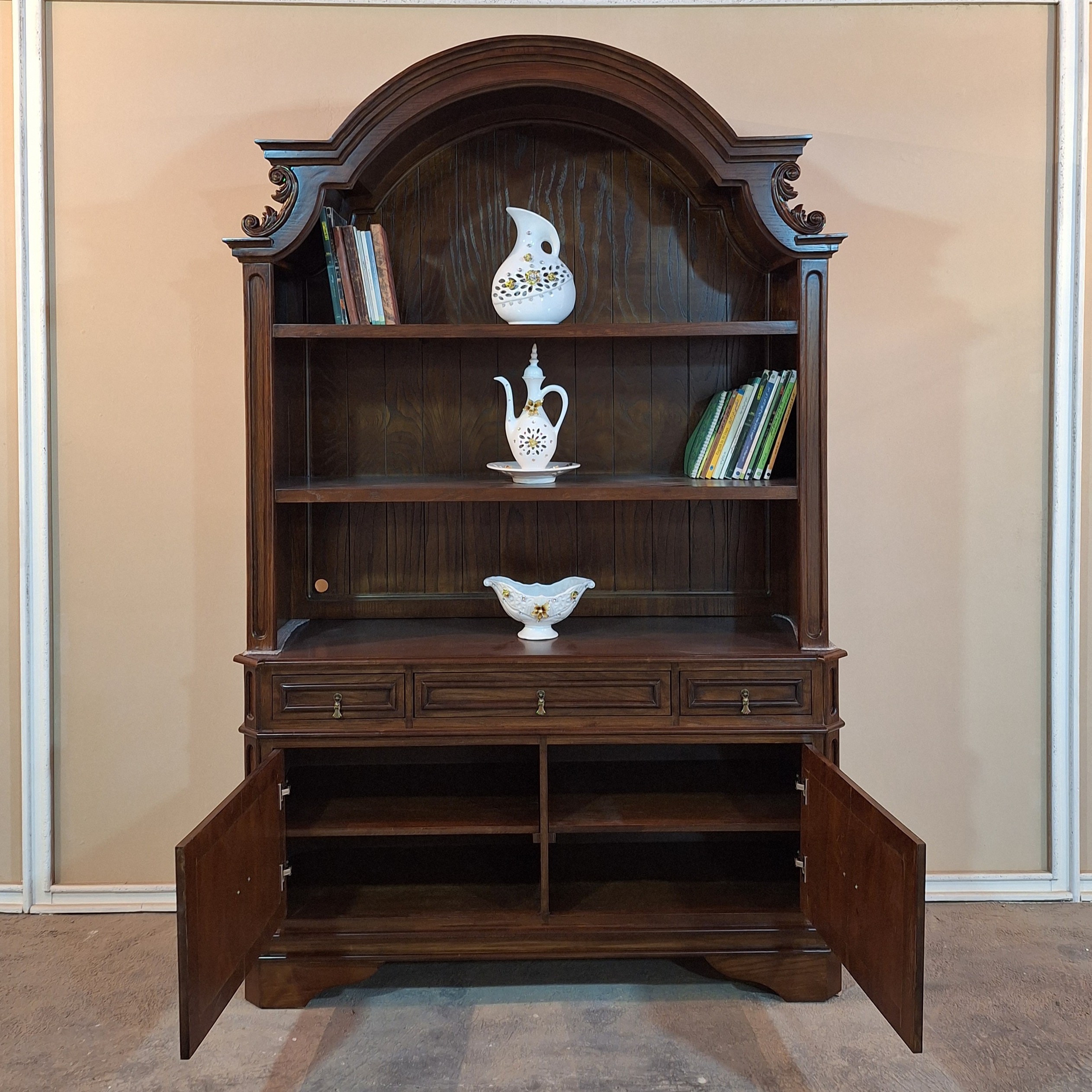 یکی از کارهایی که چند تا کاربرد داره. بوفه، کتابخانه ، کافیبار کار بسیار زیبا و شیک به سبک کلاسیک با ابعاد: 230/50/140 جنس: پایه ها چوب روس ، بدنه ام دی اف روکش چوب بلوط ، ریل کشو ها ساچمه ای سه زمانه پهن ،لولای درب ها آرام بند رنگبندی از سفید تا مشکی همه تم ها قابل اجراست. پس به دلخواه خودت رنگشو انتخاب کن. ارسال به سراسر کشور داریم هزینه ارسال به عهده مشتری و به صورت میباشد.