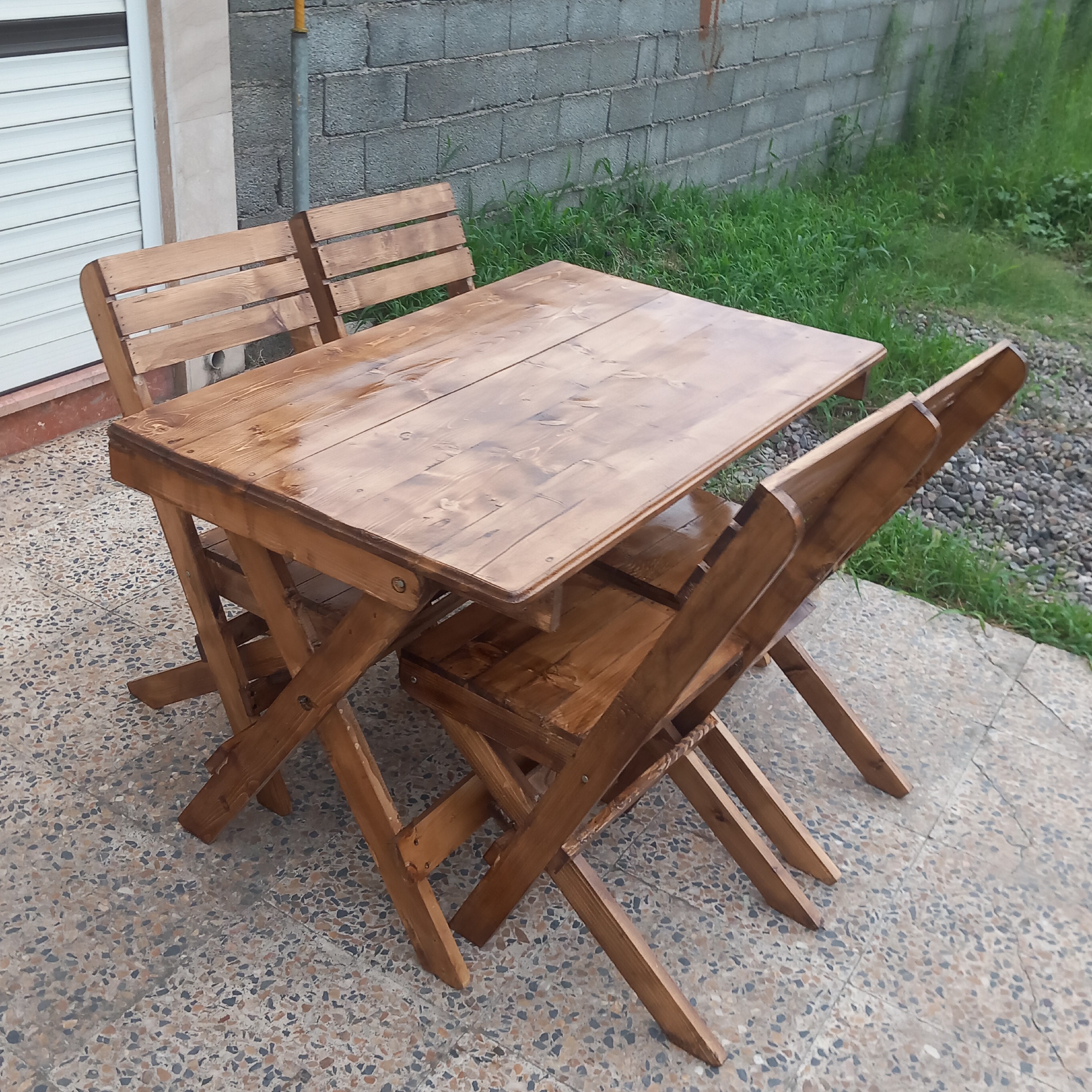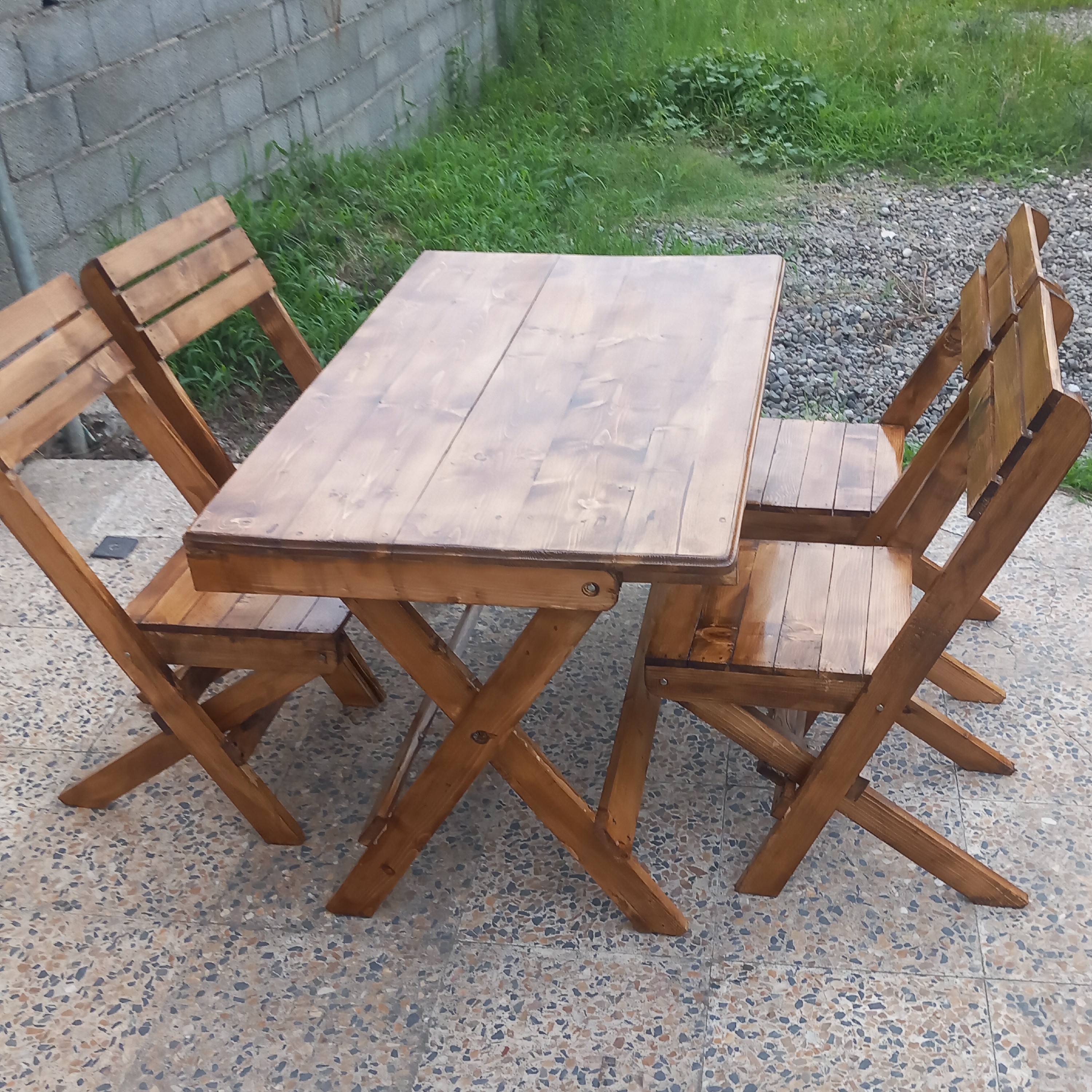 میز ک صندلی چوبتاشو درجه یک ساخته شده با بالاترین کیفیت و رنگ آمیزی متنوع و بسیار زیبا این محصول به صورت کامل ضد آب میباشد و دارای سه لایه رنگ کاری سیلرو کیلر و نیم پلی استر میباشد. این محصول در انواع رنگ ها به دلخواه مشتری قابل سفارش میباشد این محصول دارای توان بسیار بالا به علت استفاده از چوب ضخیم روسی و صفحات پرس شده میباشد که مدت طولانی برای شما کارکرد خواهد داشت