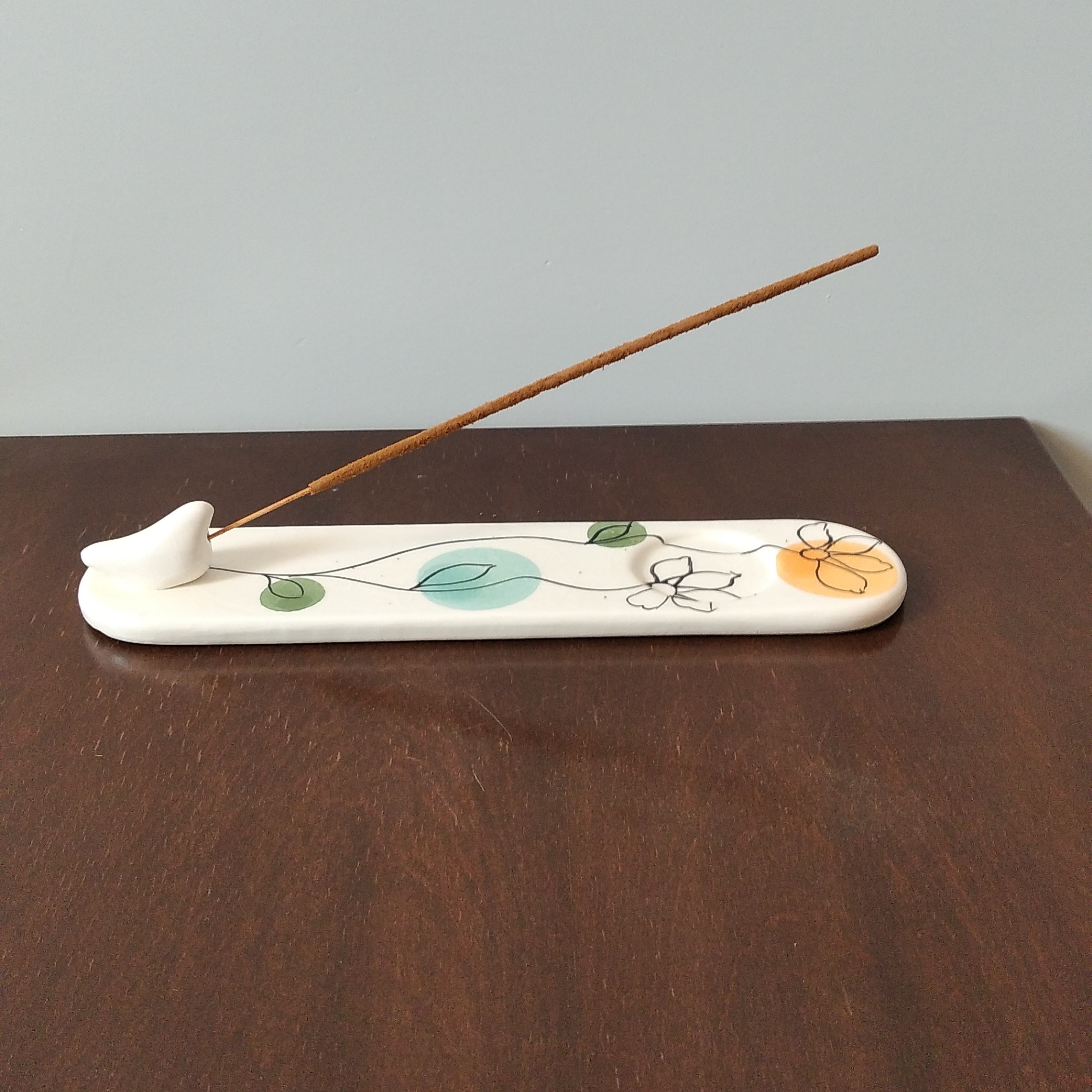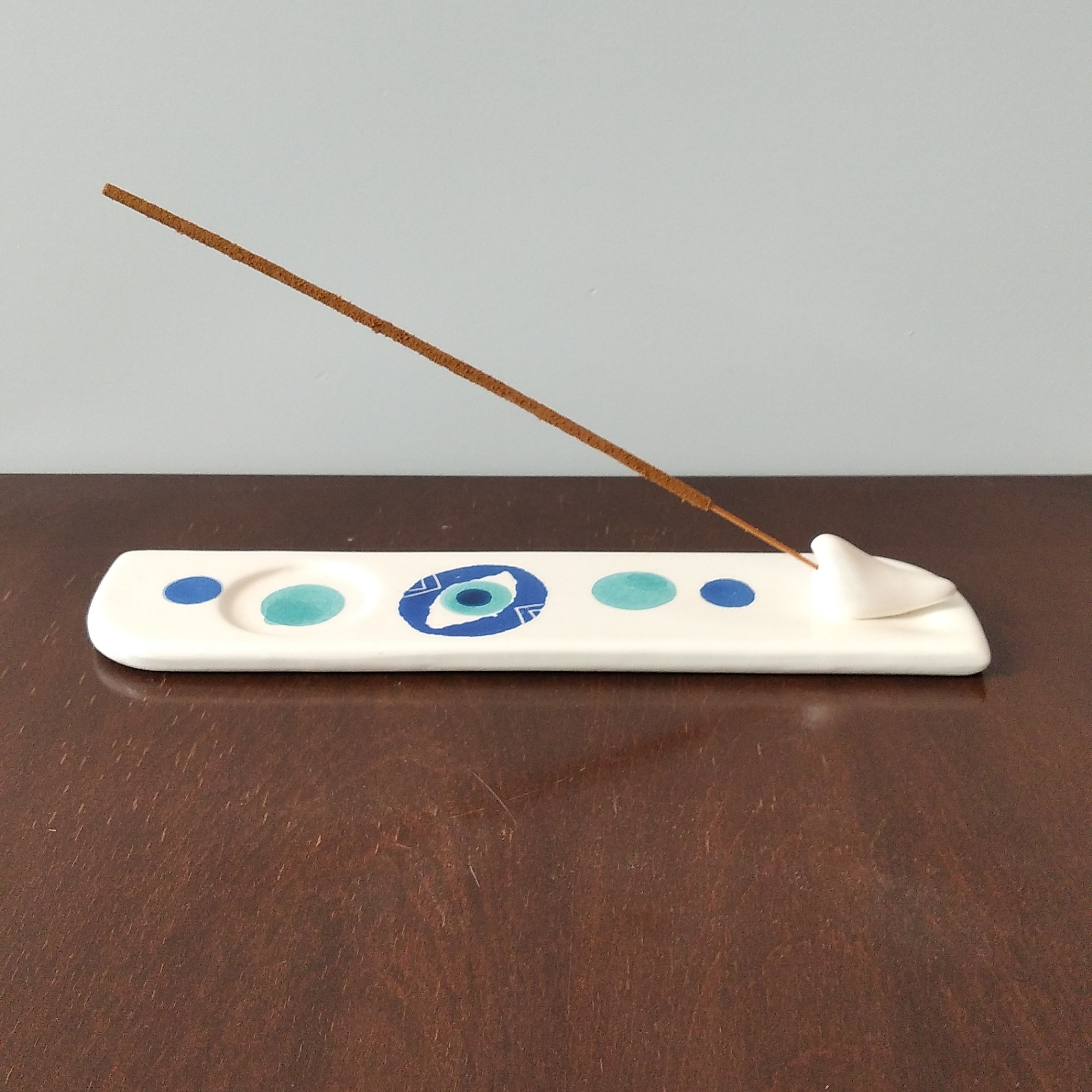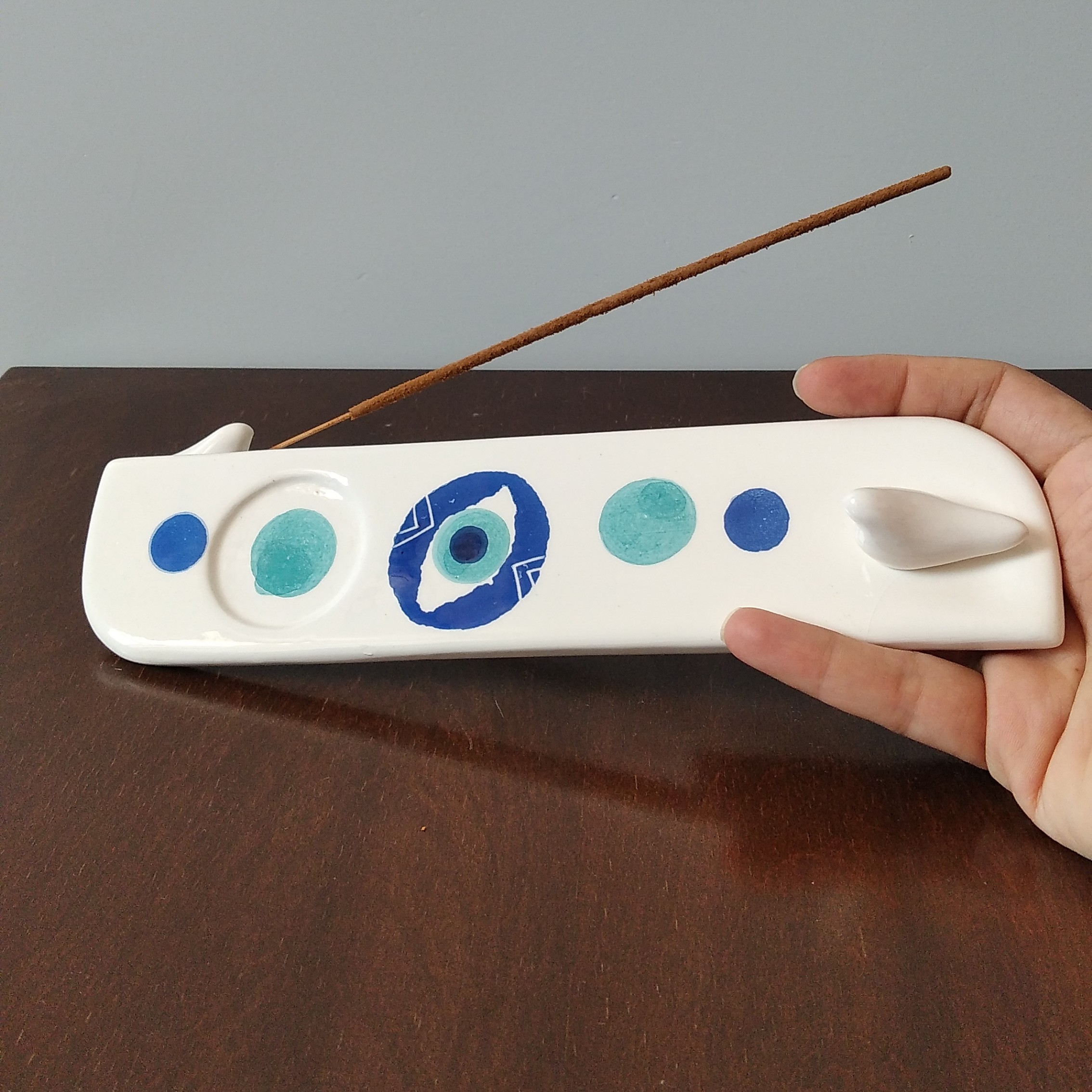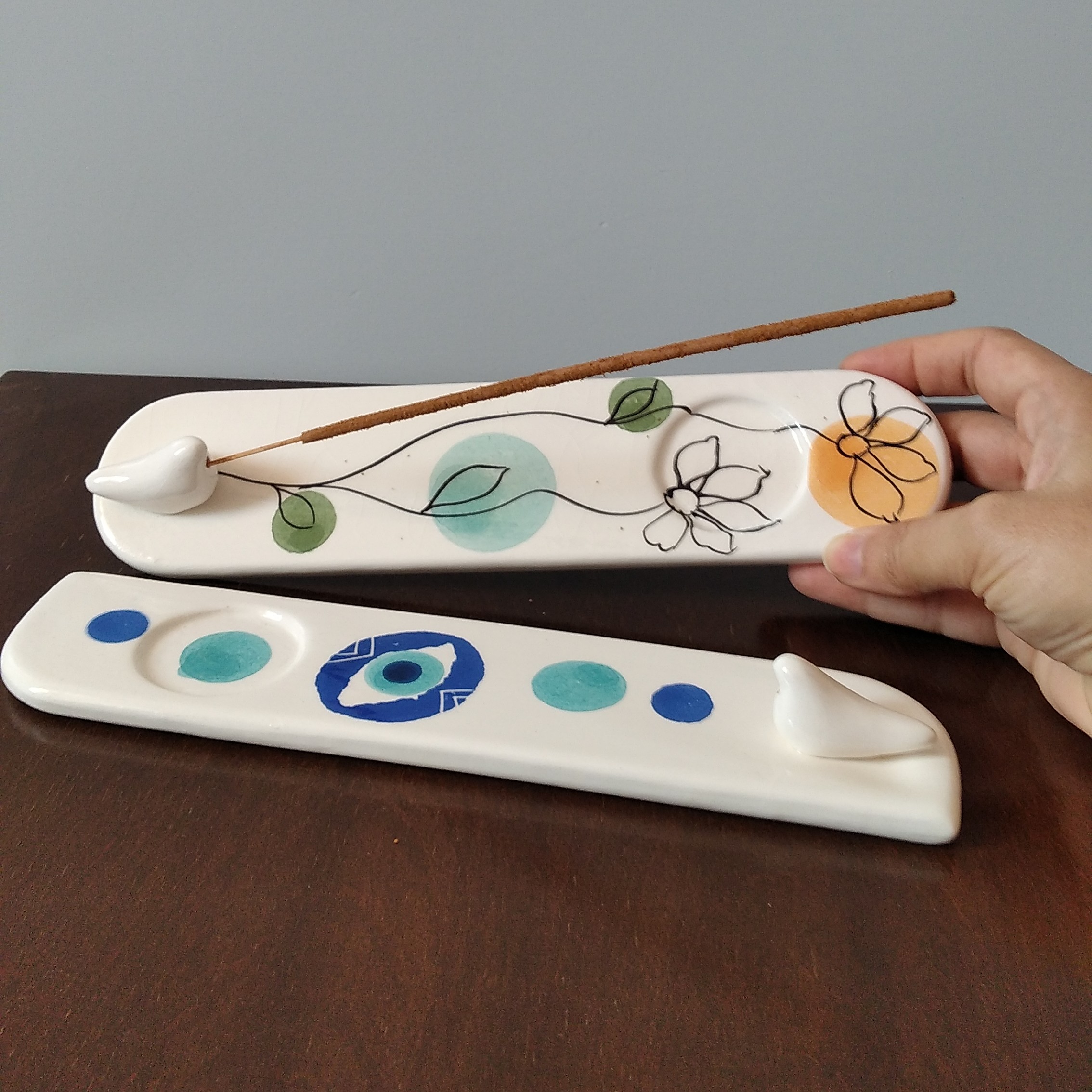 جا عودی شاخه ای جا شمعی سرامیکی طرح پرنده و چشم ونظر