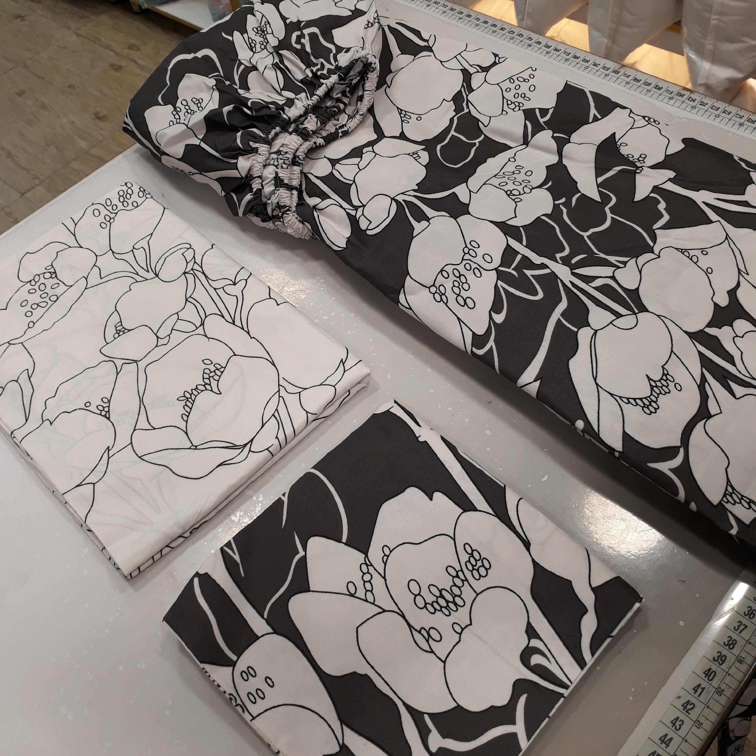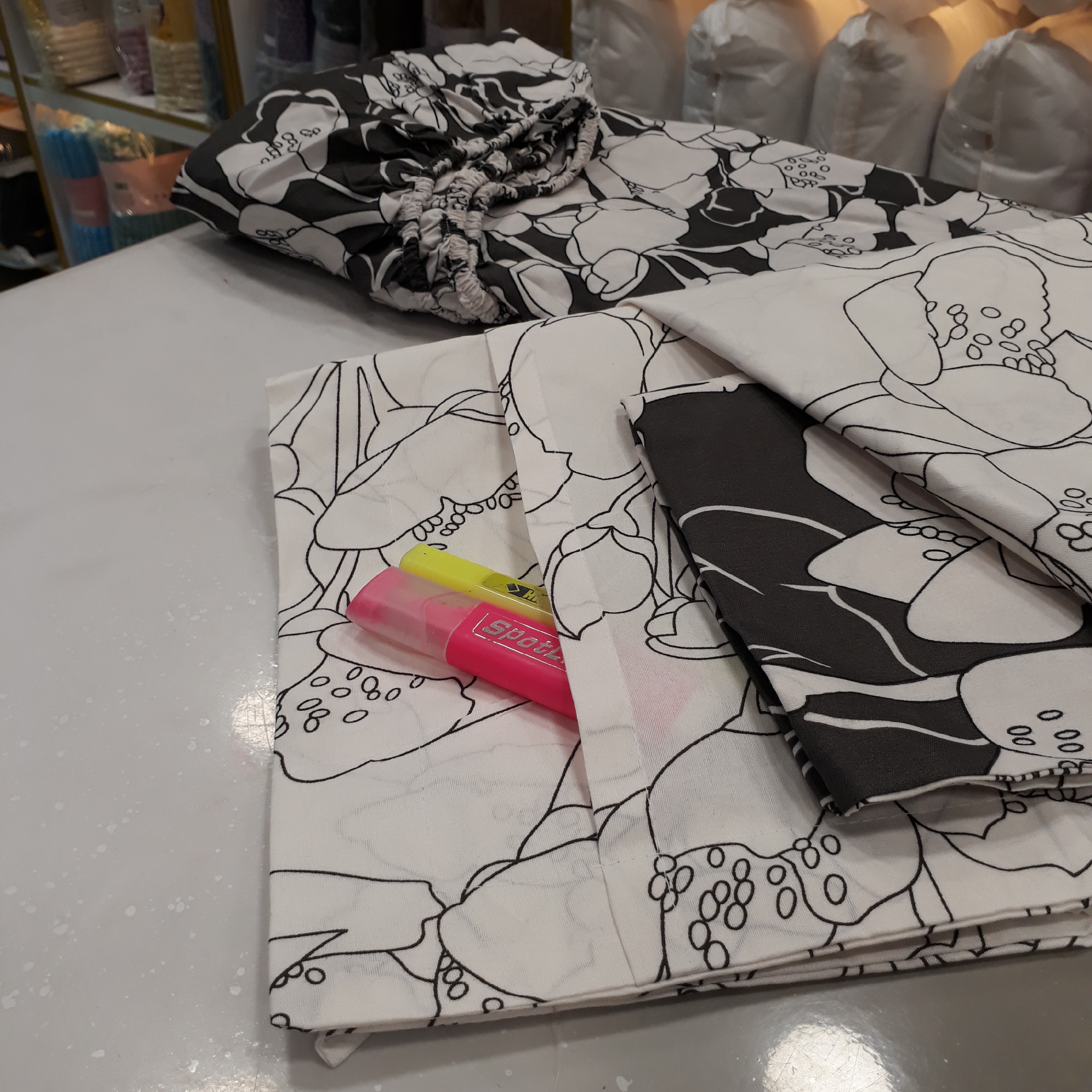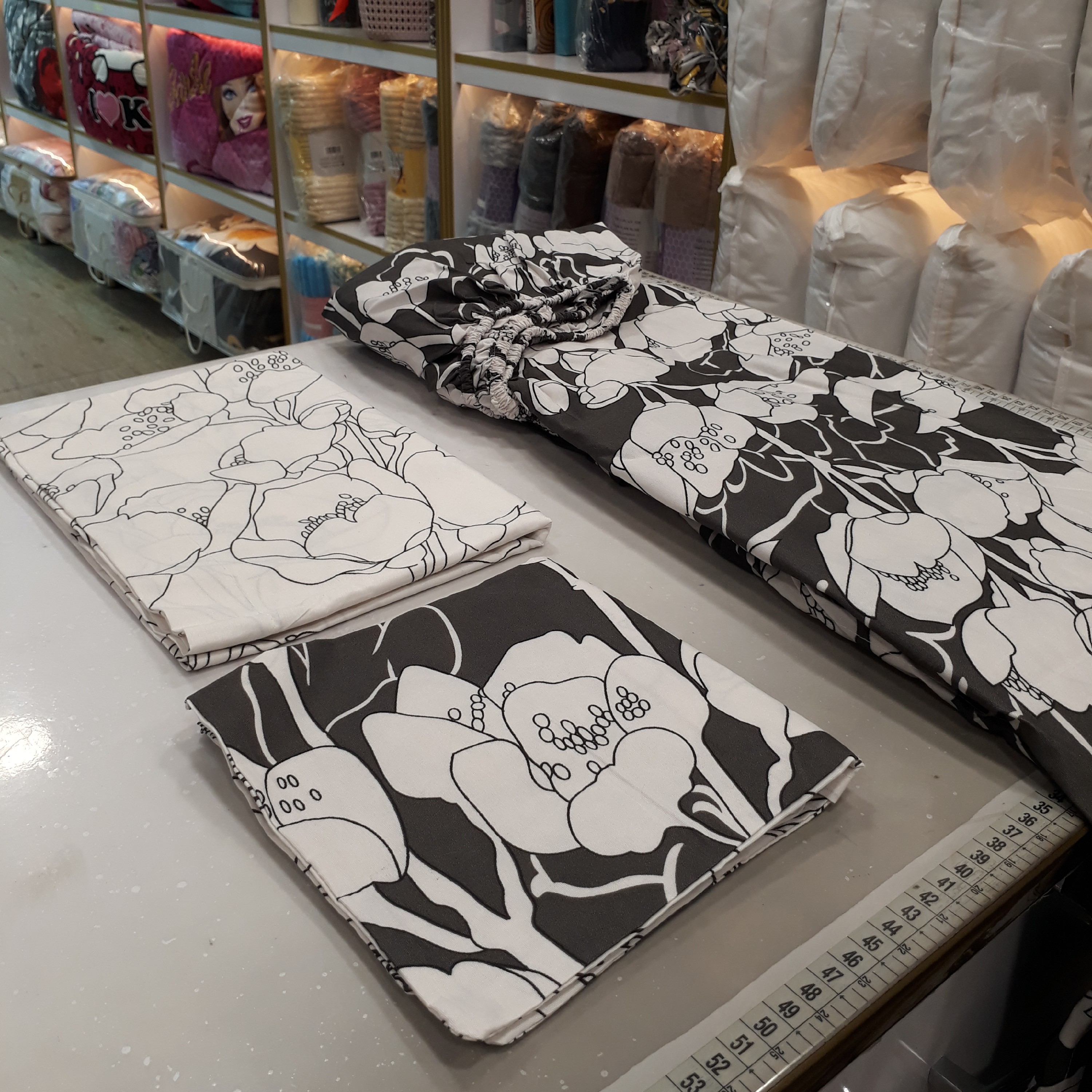 👤 یکنفره : 4تکه ، شامل لحاف ، ملحفه کشدوز ، روبالشتی ، روکوسنی ✔لحاف دورو می باشد، یکطرف طوسی تیره ، یکطرف زمینه سفید با گلهای نازک مشکی ✔لحاف دارای دوخت CNC 🤩 مزایا: رنگ ثابت، بدون پرزدهی ، بدون آبرفت ■سایز روبالشتی: 55 * 76 قابدوزی شده □سایز روکوسنی: 37 * 37