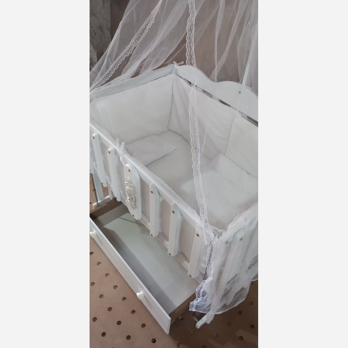 تخت-گهواره کنار مادر مدل درنا ● جنس: ام دی اف وکیوم شده ●دارای کشو و طبقه جهت قرار دادن وسایل نوزاد ● سایز: طول 90- عرض 60 ● دارای کفی تخت 16 میل و مقاوم ●دارای سرویس خواب ●دارای گارد دور تخت ●دارای تور تخت ●قابلیت تنظیم ارتفاع کفی تخت گهواره با تخت مادر ●قابلیت شیب دار کردن برای نوزادان دچار رفلاکس معده ●دارای سیستم ننویی بلبرینگی بدون سر و صدا ●قابلیت ثابت کردن گهواره ●دارای مکانیزم آسانسوری درب جلویی تخت جهت سهولت دسترسی مادر به نوزاد