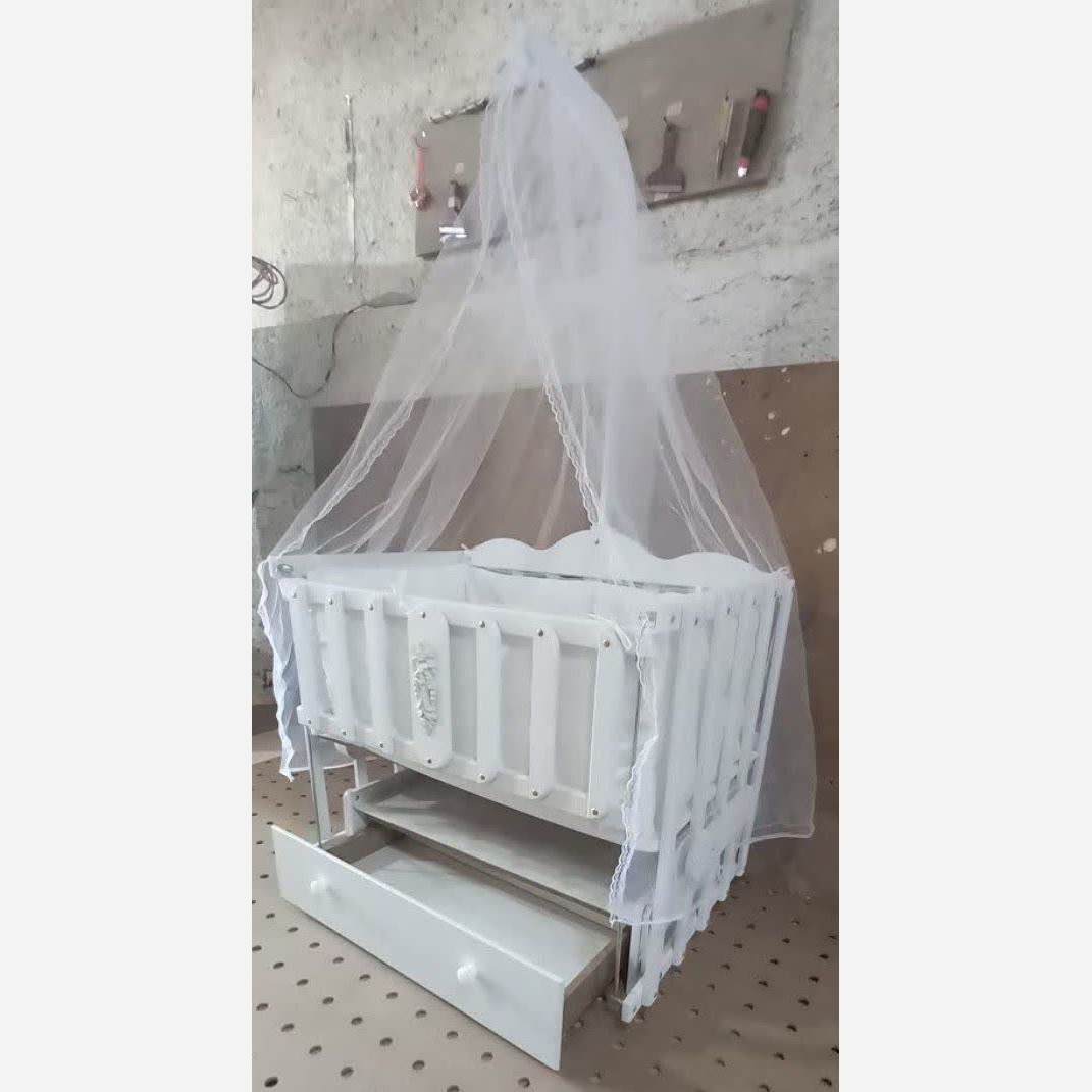 گهواره کنار مادر مدل درنا -دارای کشو و تشک پتو بالشت گارد دور تخت و تورتخت-جنس ام دی اف وکیوم شده-دارای حفاظ اسانسوری مبلمونسرا مدل 226704