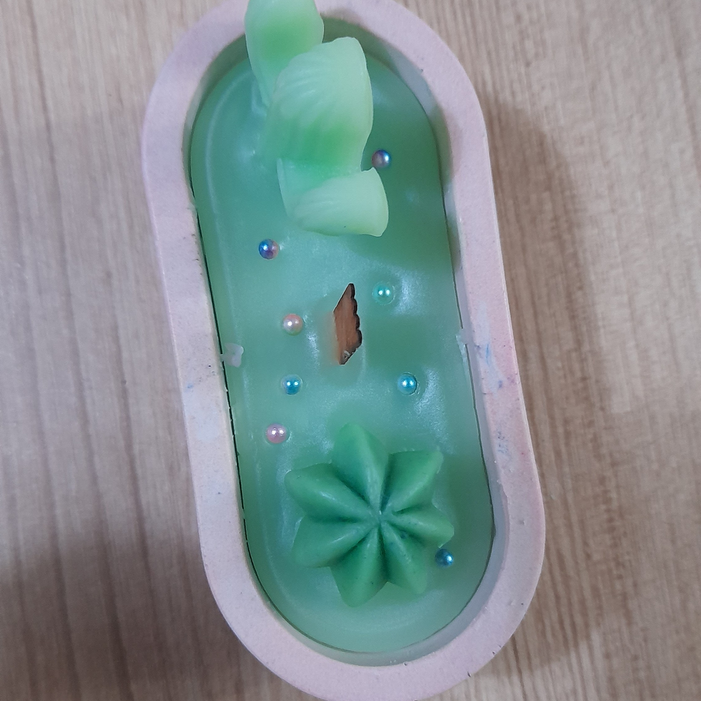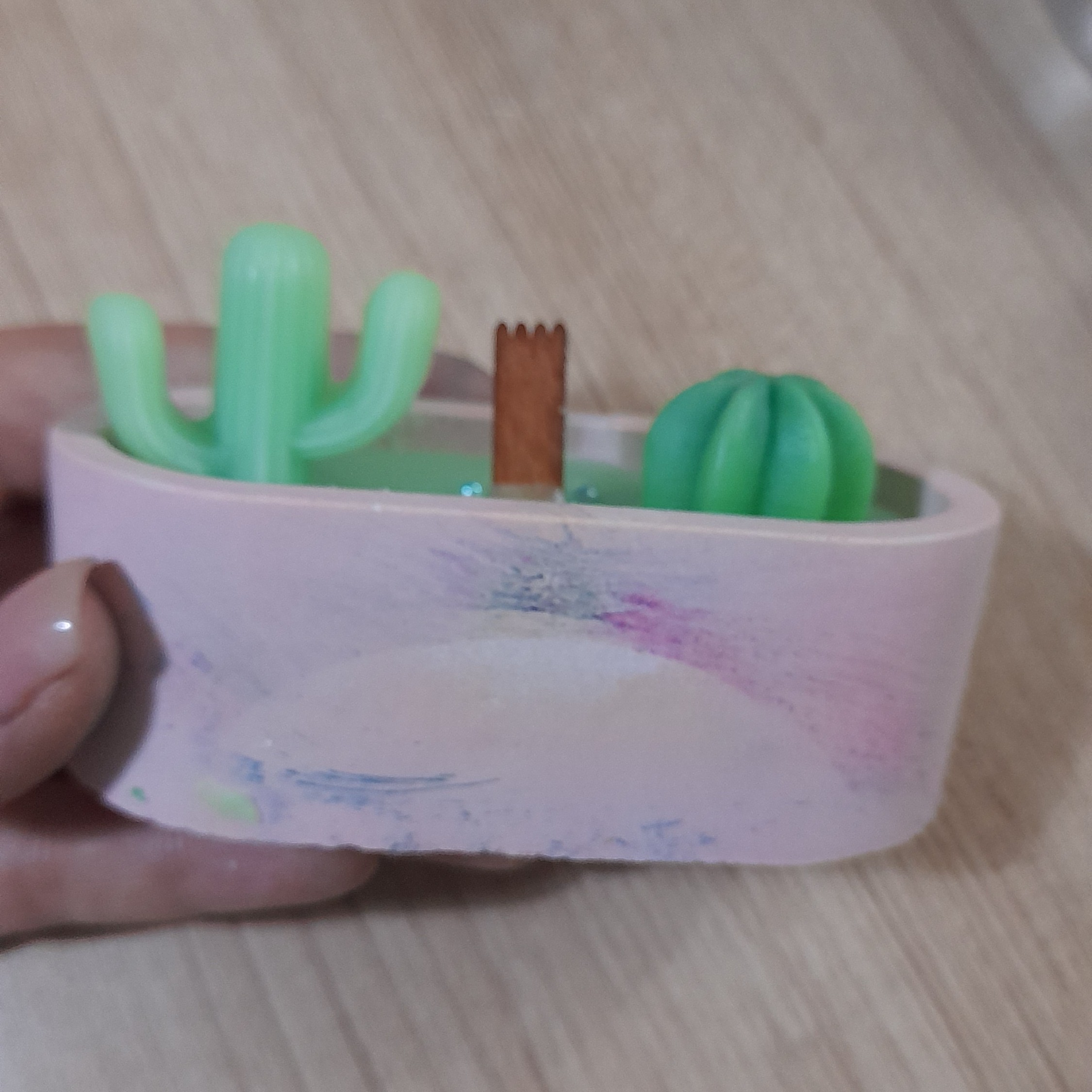 شمع معطر طرح کاکتوس با فتیله چوبی _فتیله نخی هم قابل اجراست. حس ارامش رو با سوختن این شمع با فتیله چوبی تجربه کنید. ابعاد کاسه سنگی: 4 در 8سانتیمتر کاسه دایره قطر12سانتی هم میتونه کاسه شمع طرح کاکتوسی باشه با فتیله نخی هم قابل اجرا هست