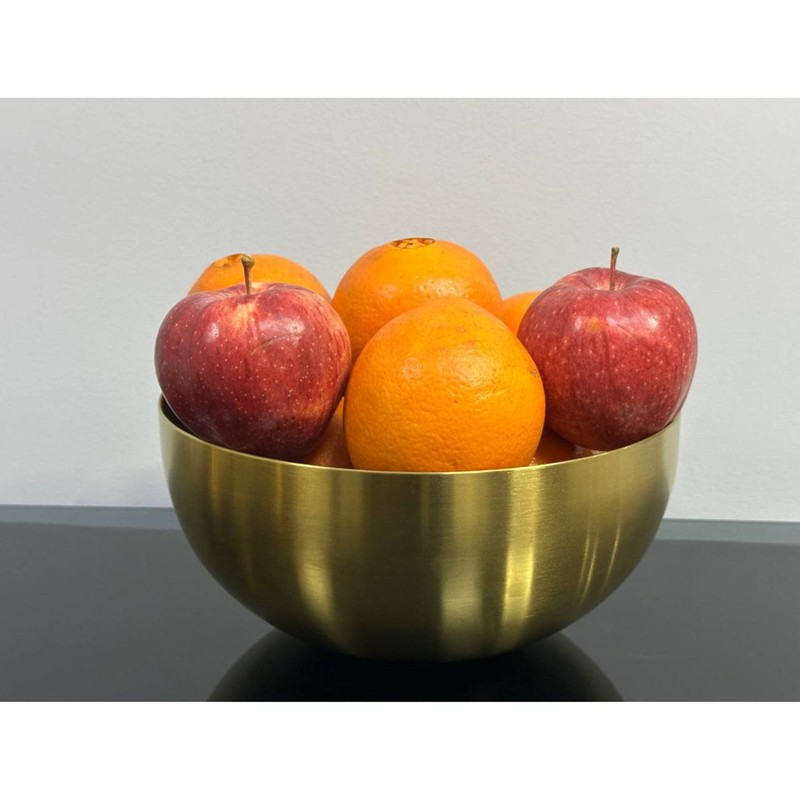 کاسه بزرگ از جنس استیل ضد زنگ آهنربا نگیر رنگ طلایی مناسب برای سرو میوه، تنقلات، آجيل، سالاد و... سایز کوچک تر هم داخل غرفه موجود است محصول فاقد جعبه شرکتی میباشد از برخورد مواد شیمیایی قوی با سطح محصول مثل وایتکس خودداری شود از کشیدن سیم و اسکاچ زبر خودداری کنید از قرار دان محصول داخل ماشین ظرفشویی خودداری شود وجود خش و لک در بعضی موارد در محصول وجود دارد