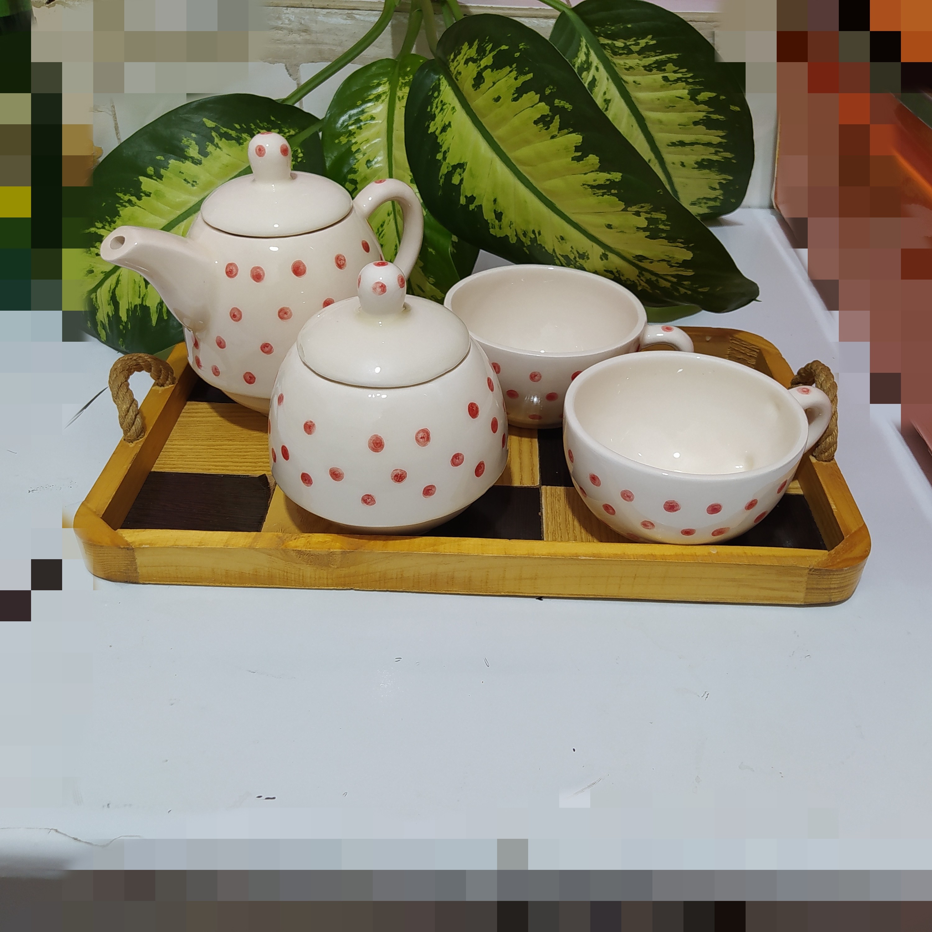 ست قوری ، فنجان و قندان دونفره قابل شستشو در ماشین ظرف شویی پخت شده در کوره یا دمای 1100 لعاب بدون سرب لطفاً قبل از ثبت سفارش موجودی بگیرید
