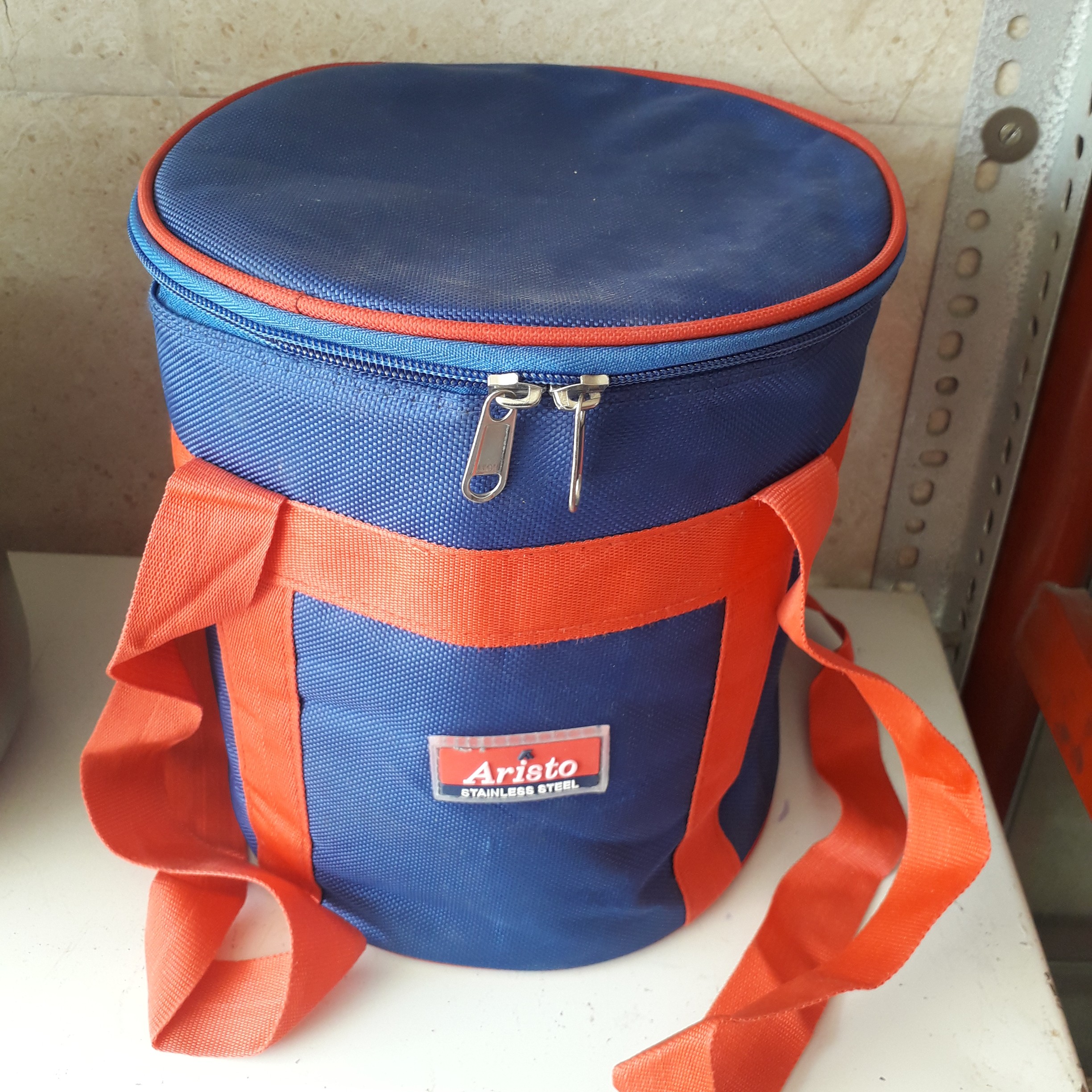 این ظرف دارای یک کیف حمل ضخیم و گرم نگه دارنده و 6 بشقاب و 6 قاشق و 6کاسه و یک حوله و 4 طبقه هست