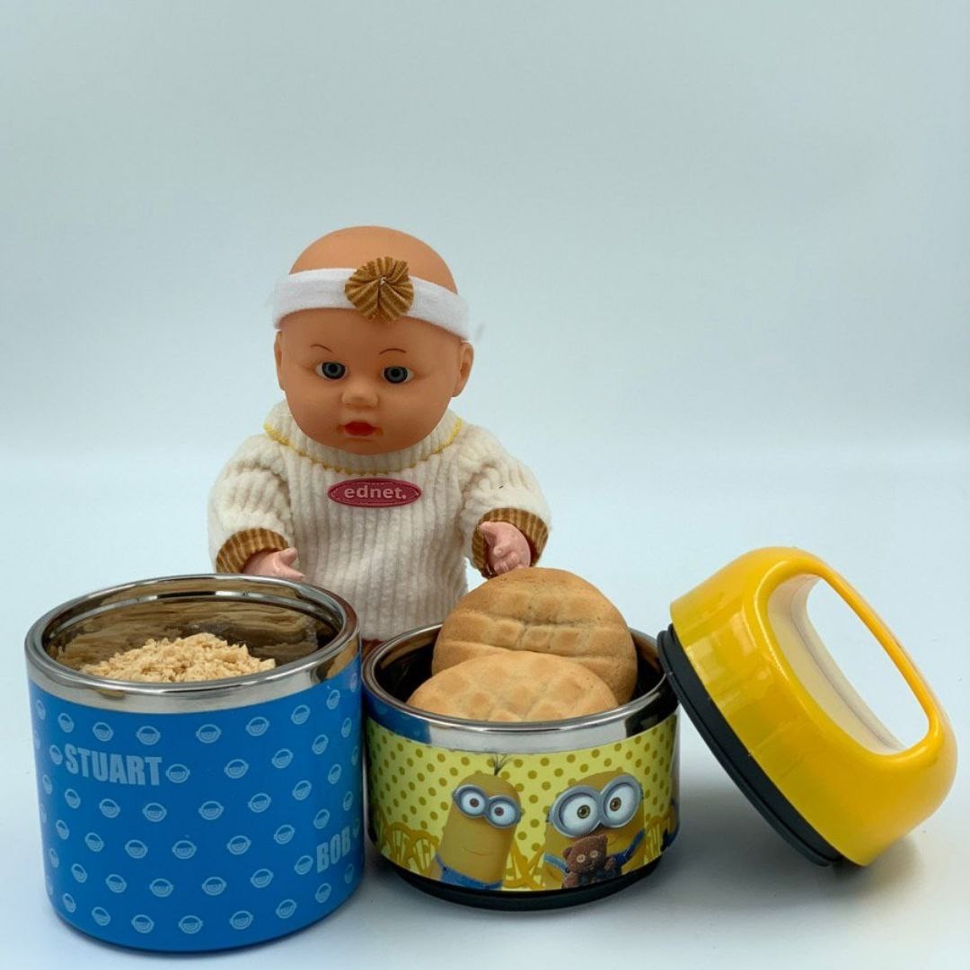 ظرف غذای دو طبقه دسته دار 😍 در سه طرح زیبای مینیون ، فروزن ، کیتی ✅جنس داخل ظرف استیل ✅جنس بدنه پلاستیک ✅دارای دسته 📏ابعاد 20 در 11 🖌️رنگ بندی زرد ، آبی ، صورتی