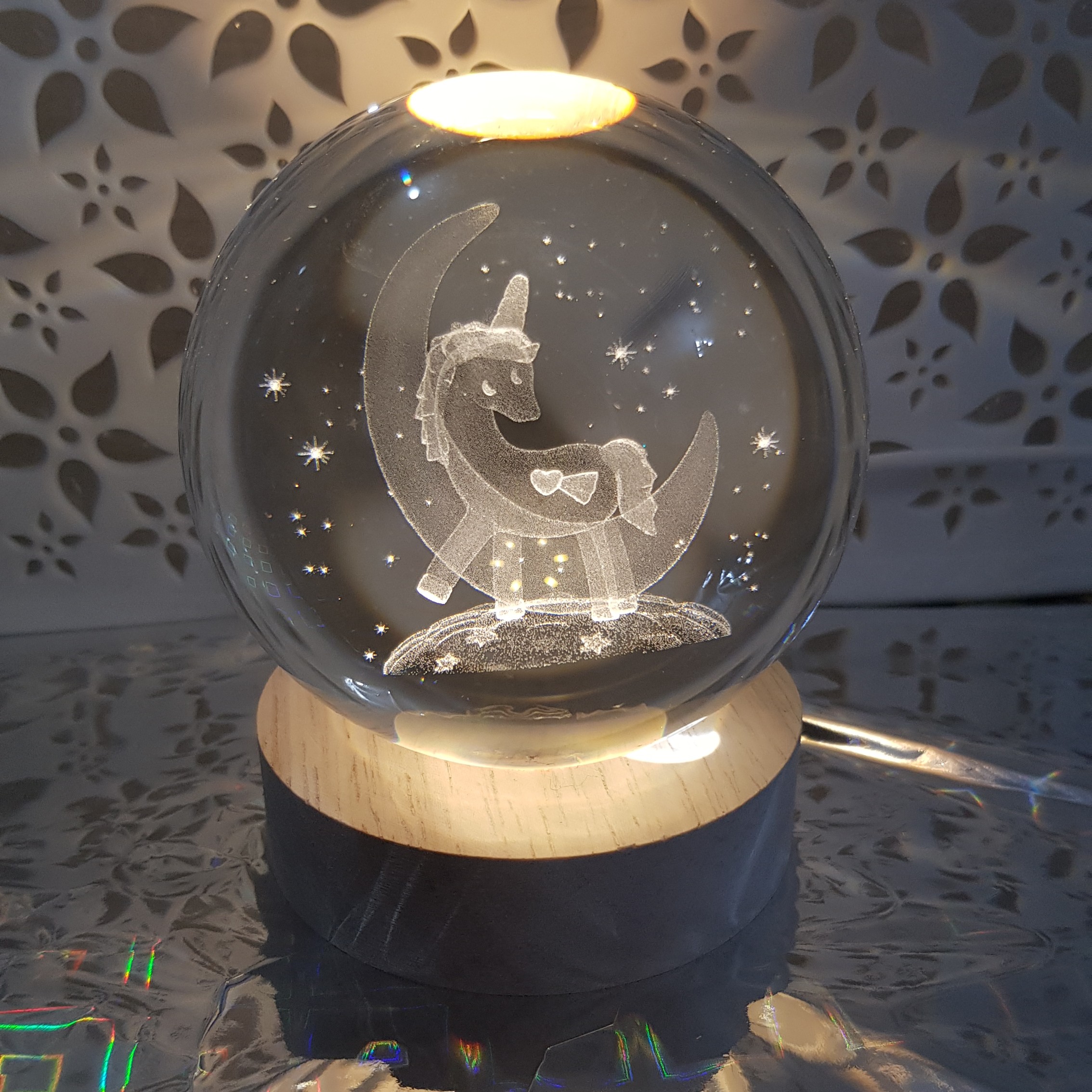 گوی کریستالی طرح یونیکورن قطر خود گوی = ۸ سانت ارتفاع با پایه = ۱۰ سانت پایه چوبی دارد کابل usb دارد به برق شهری وصل میشه کیفیت نور عالیه قبل ارسال کامل چک میشه و سالم ارسال میشه براتون خیالتون راحت هر سوالی داشتید درخدمتم
