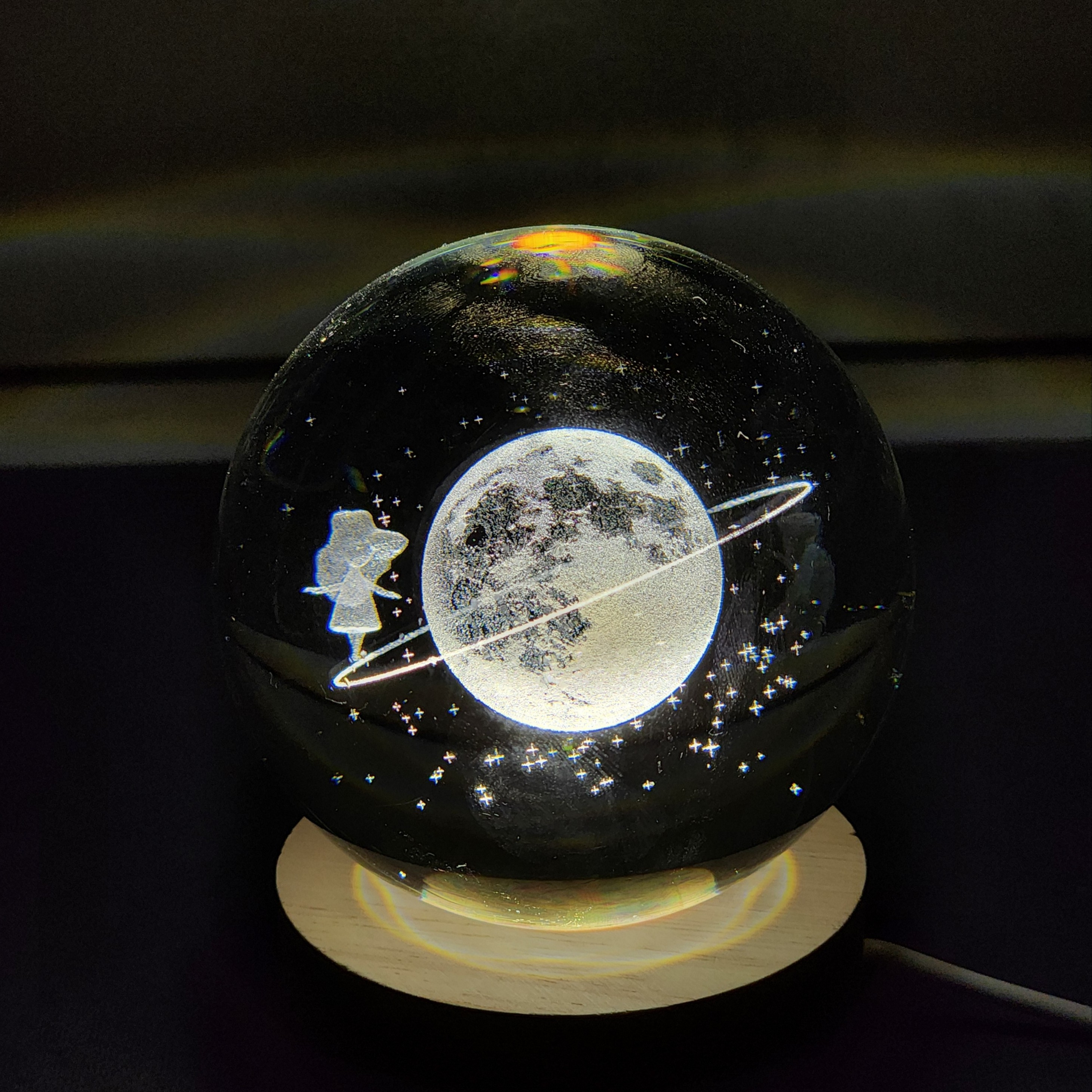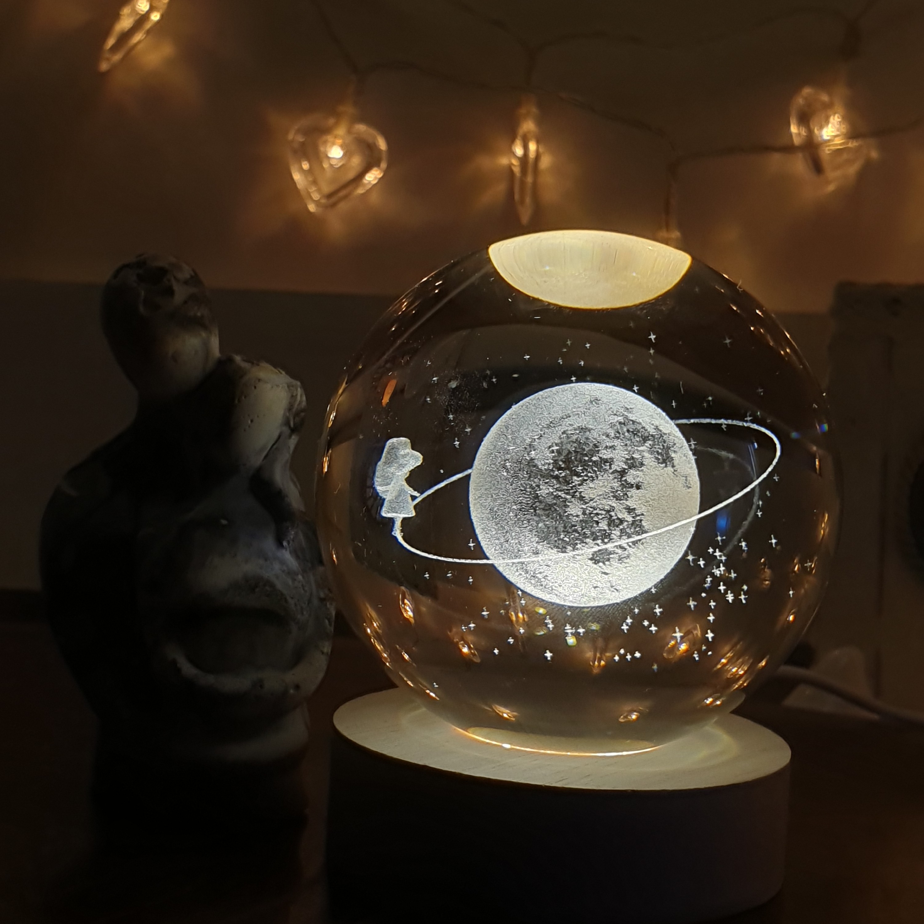 گوی کریستالی طرح ماه و دختر قطر گوی ۸ سانت ارتفاع با پایه ۱۰ سانت پایه چوبی داره کابل USB داره به برق شهری وصل میشه کیفیت نور عالیه قبل ارسال کامل چک میشه و سالم ارسال میشه براتون خیالتون راحت اگه دوست دارید برای کسی هدیه بگیرید و خوشحالش کنید این بهترین انتخابه😍