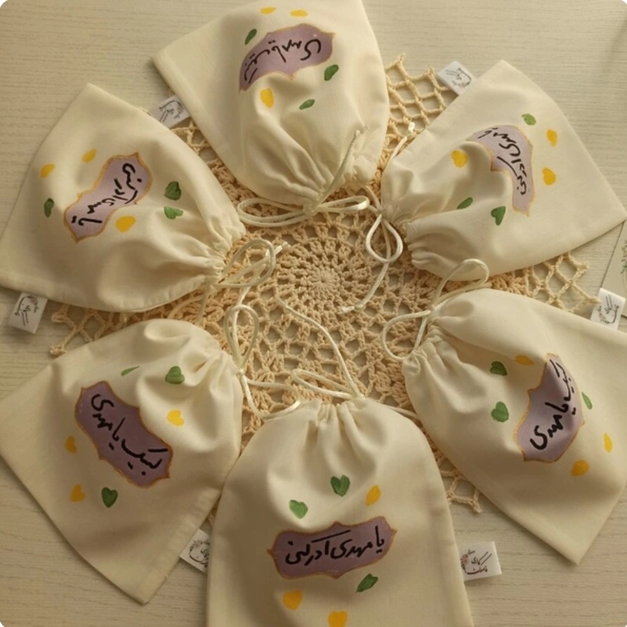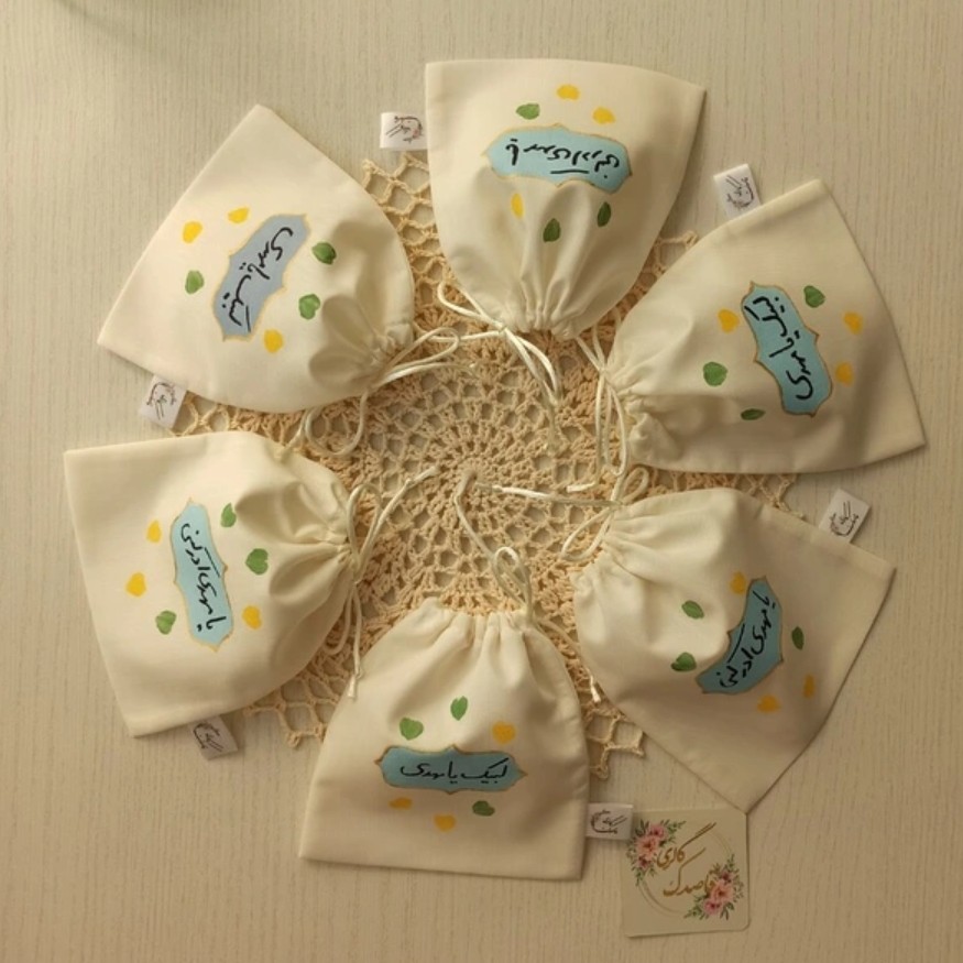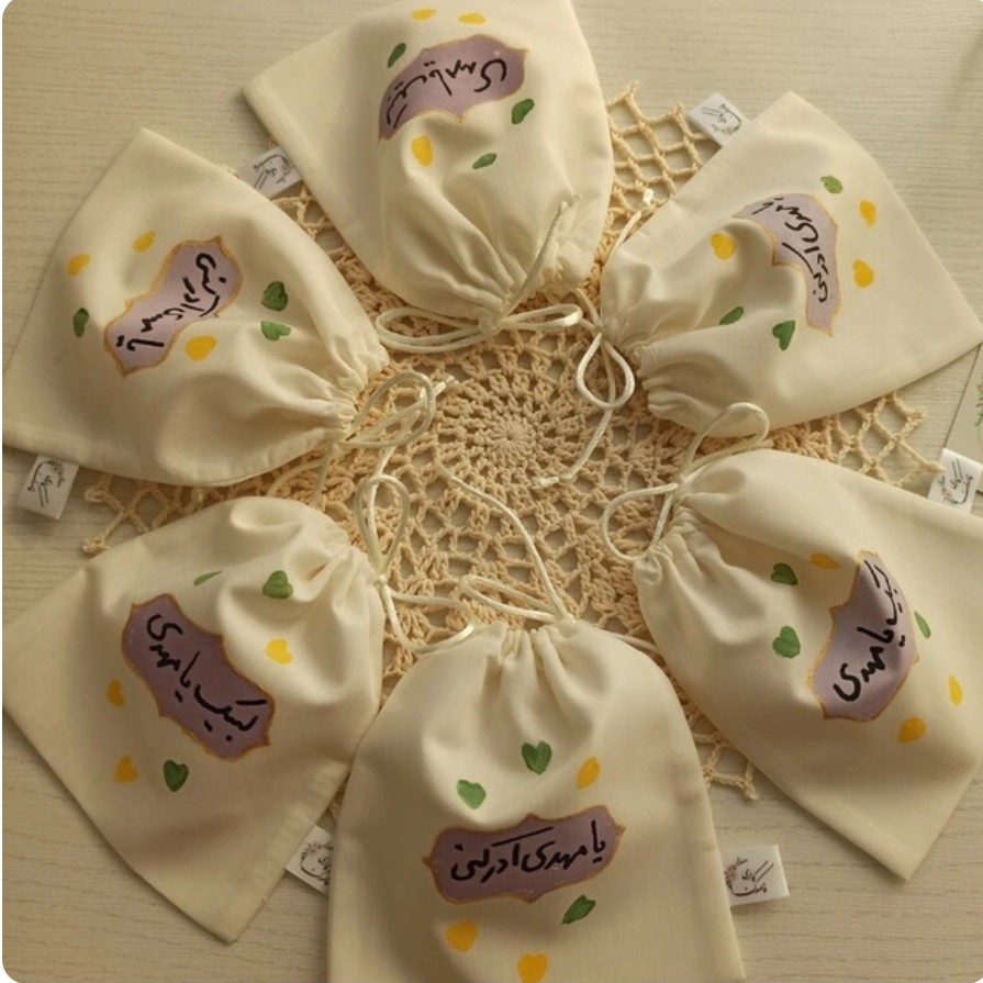 عکس کیسه های بالا جهت ایده هست و این طرح ها قابل اجراهست سایز کیسه 10در 12 سانتی جنسش پارچه متقال زخیم نقاشی شده با دست کاملا قابل شستو شو ورنگ ثابت مناسب برای نظم دهی وسایل ، گیفت، هدیه،کش مو ،ناخن گیر و خوراکی و...