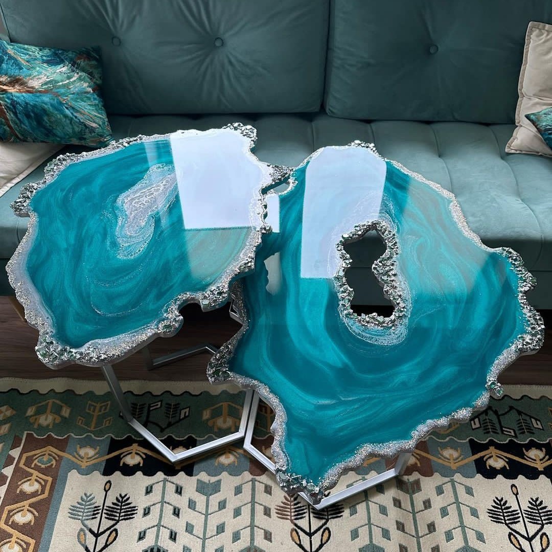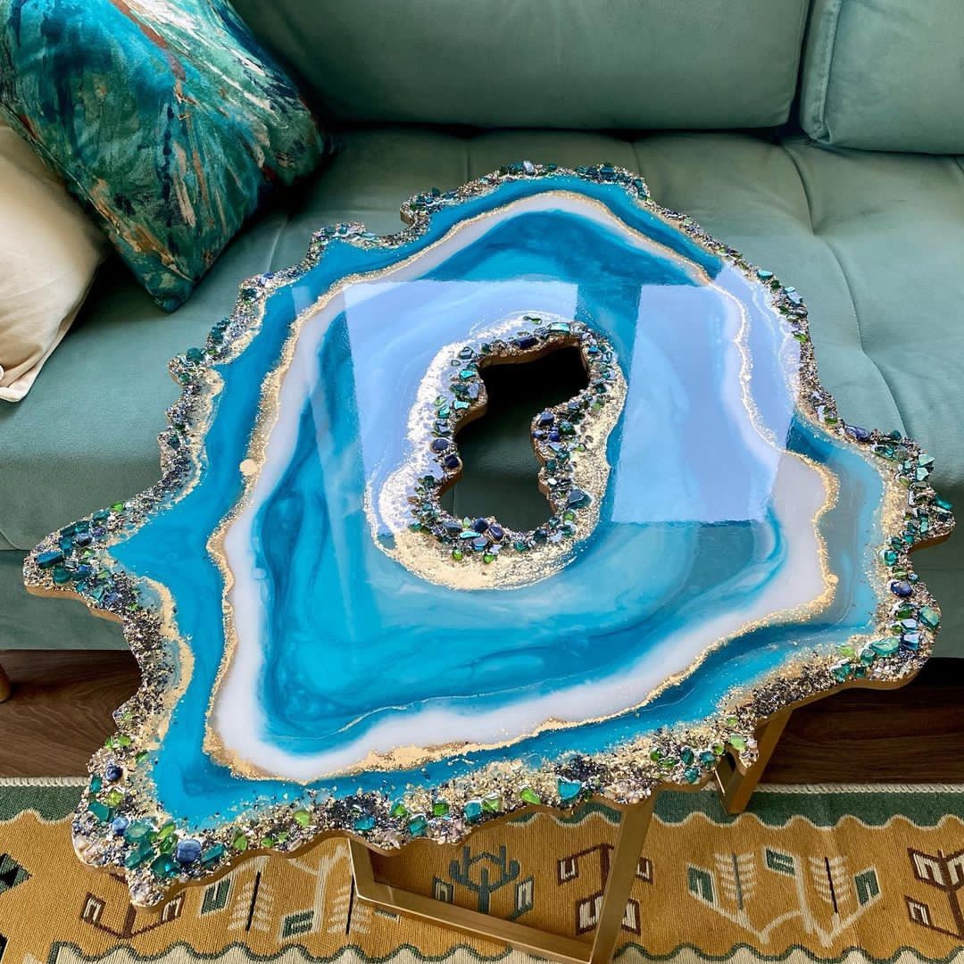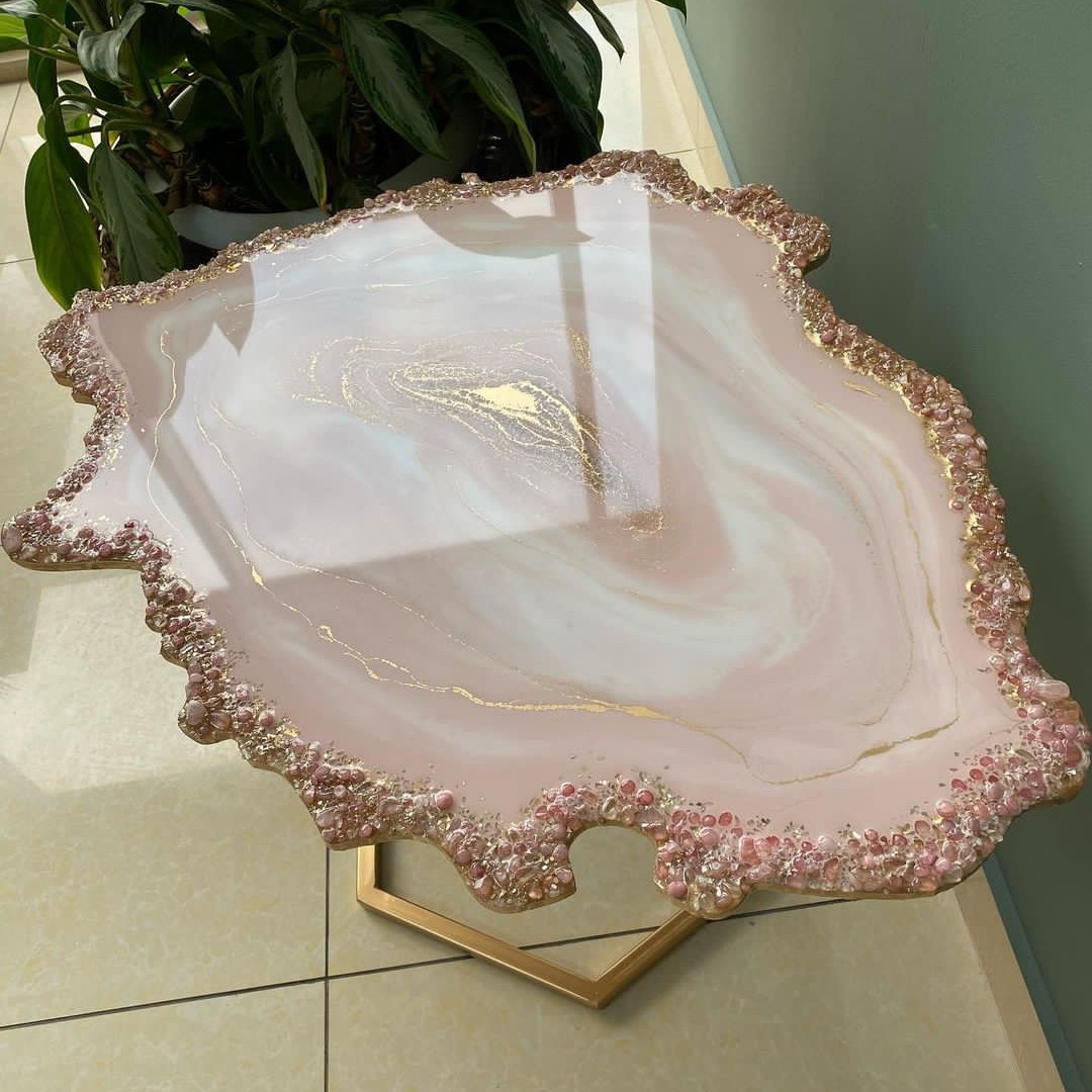 میز جلو مبلی رزینی طرح دفرمه قطر80 جهیزیه عروس مبلمونسرا مدل 219166