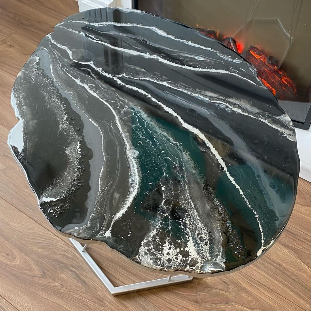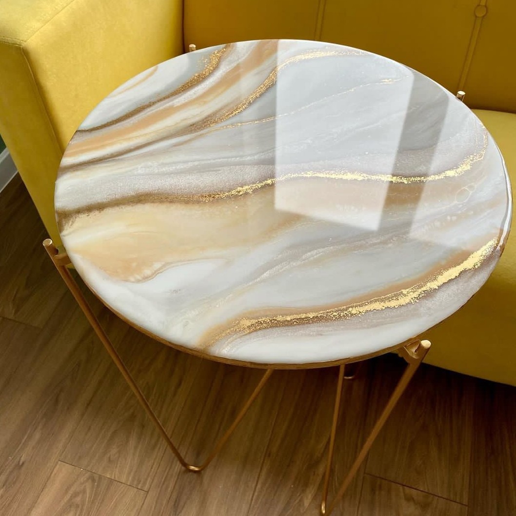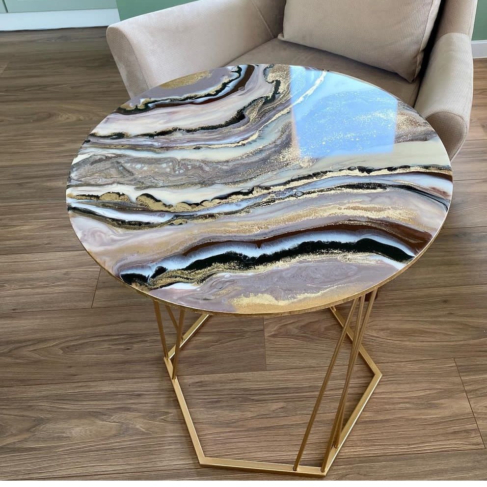 میز جلو مبلی رزینی طرح گرد قطر80 جهیزیه عروس قابل اجرا در ابعاد دلخواه و تم رنگی دلخواه همراه کار یه ساعت هم ست میز هدیه داده میشود