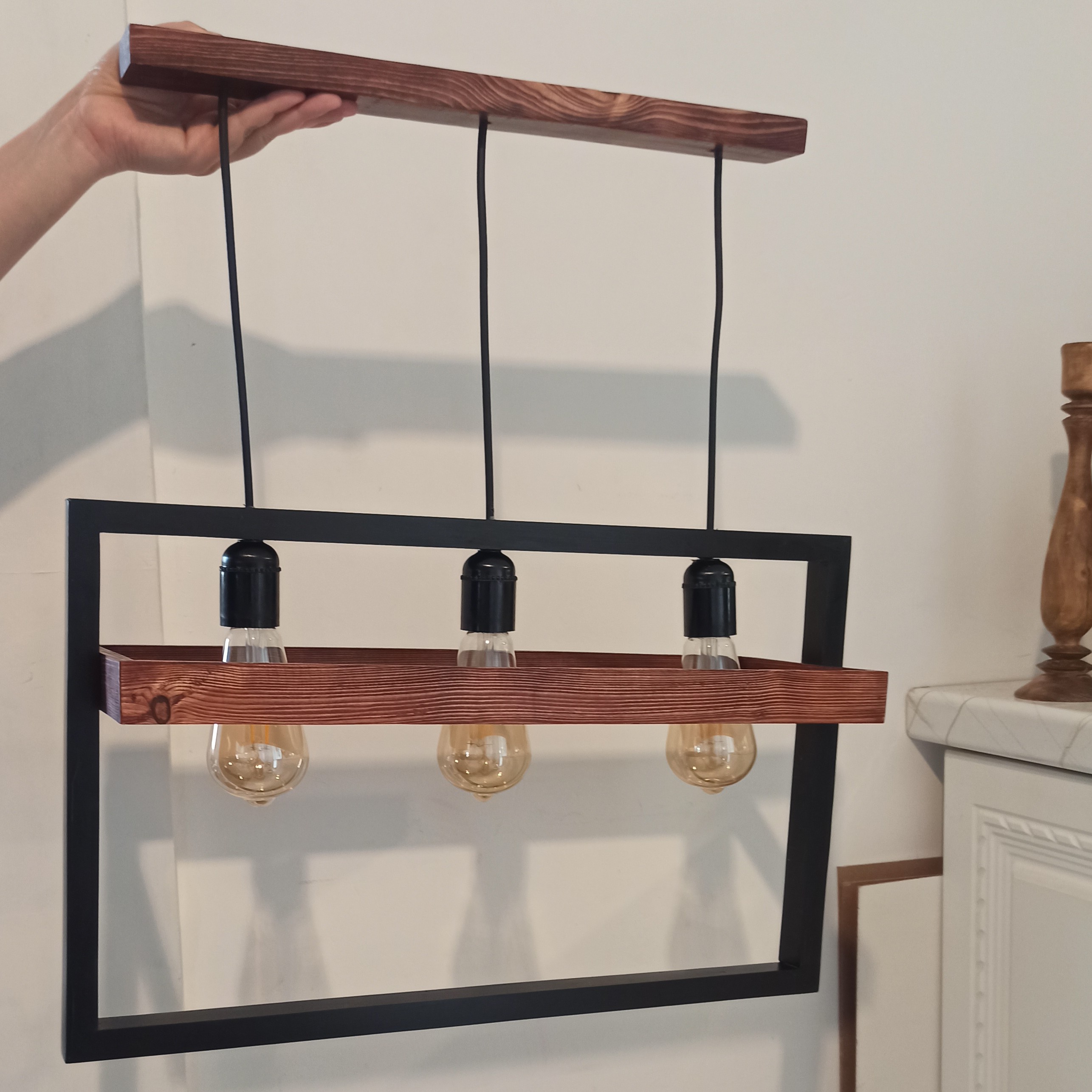 لوستر چوبی سه شعله قیمت بدون لامپ