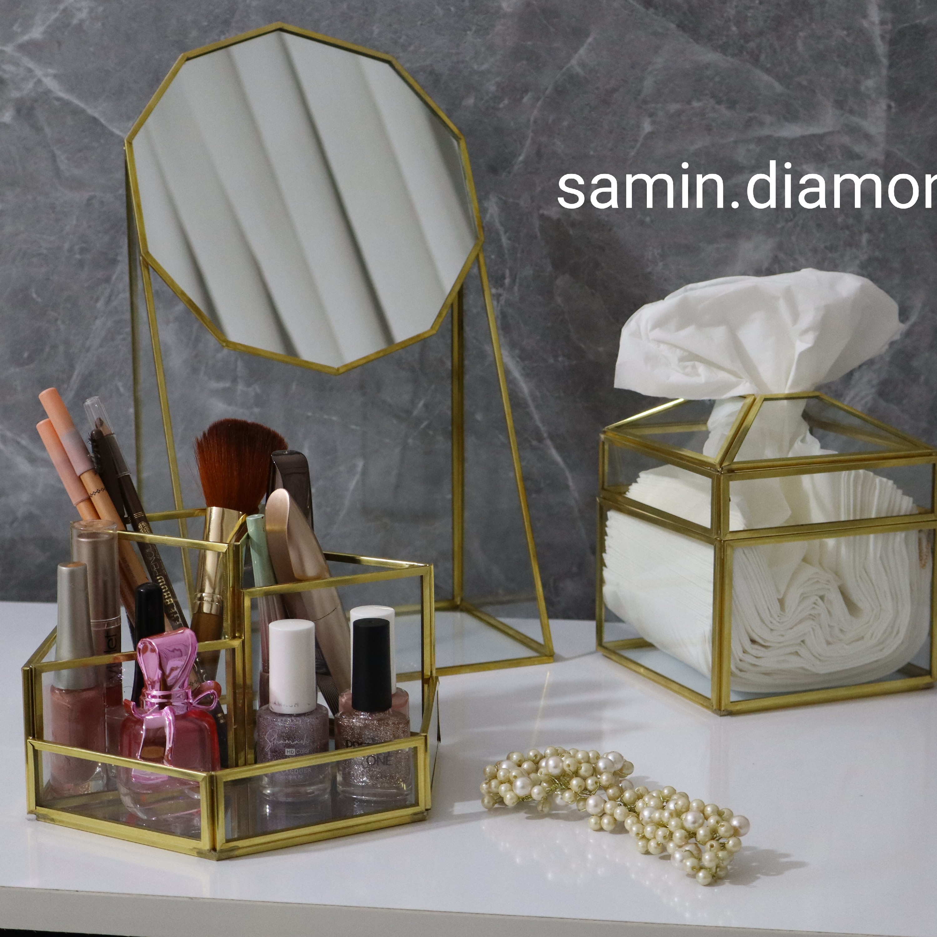 آینه رو میزی نظم دهنده میز آرایش استند ارایشی برنجی مناسب جهیزیه عروس