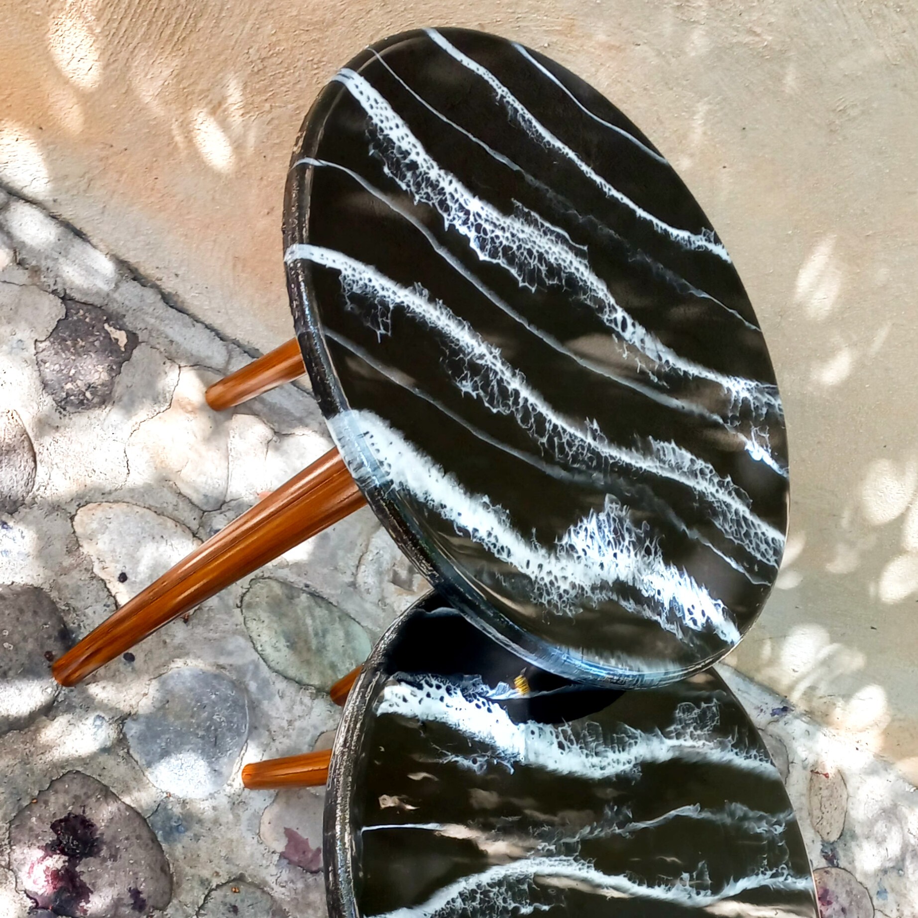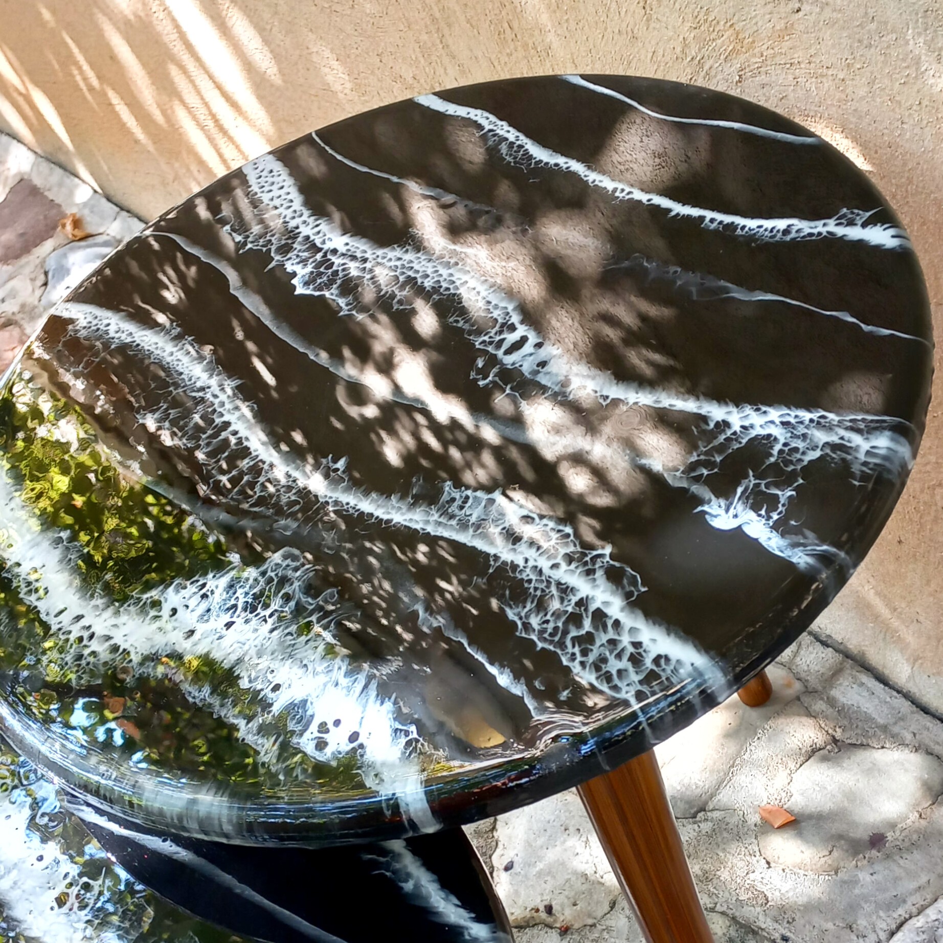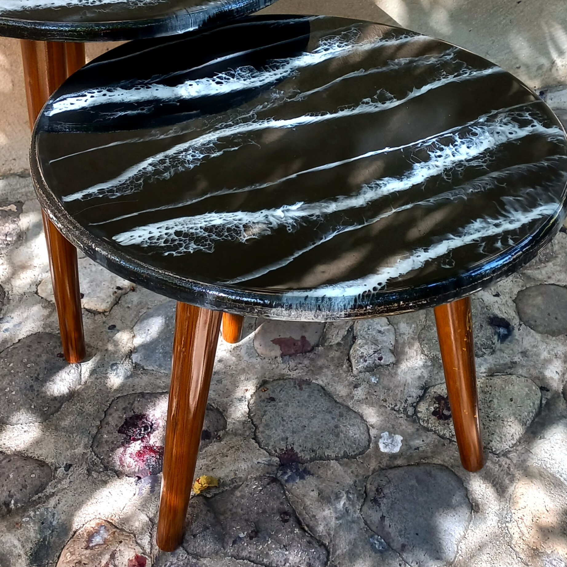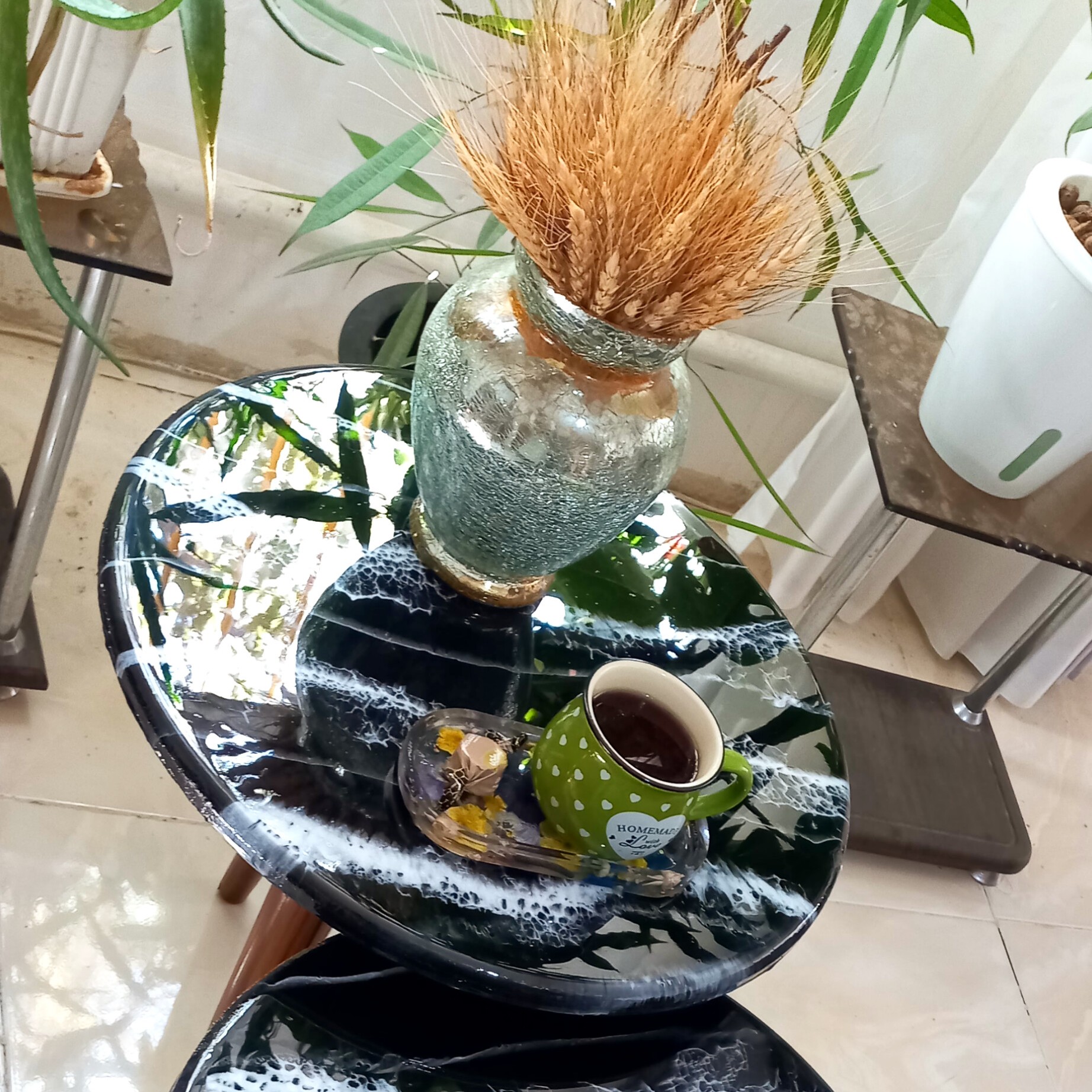 میز عسلی رزینی طرح ماربل مشکی سفید قطر صفحه 45 ارتفاع پایه ها به ترتیب 42 و 38 و 30 رنگ قابل تغییر قیمت برای یک عدد میباشد قیمت ست ستایی 3500