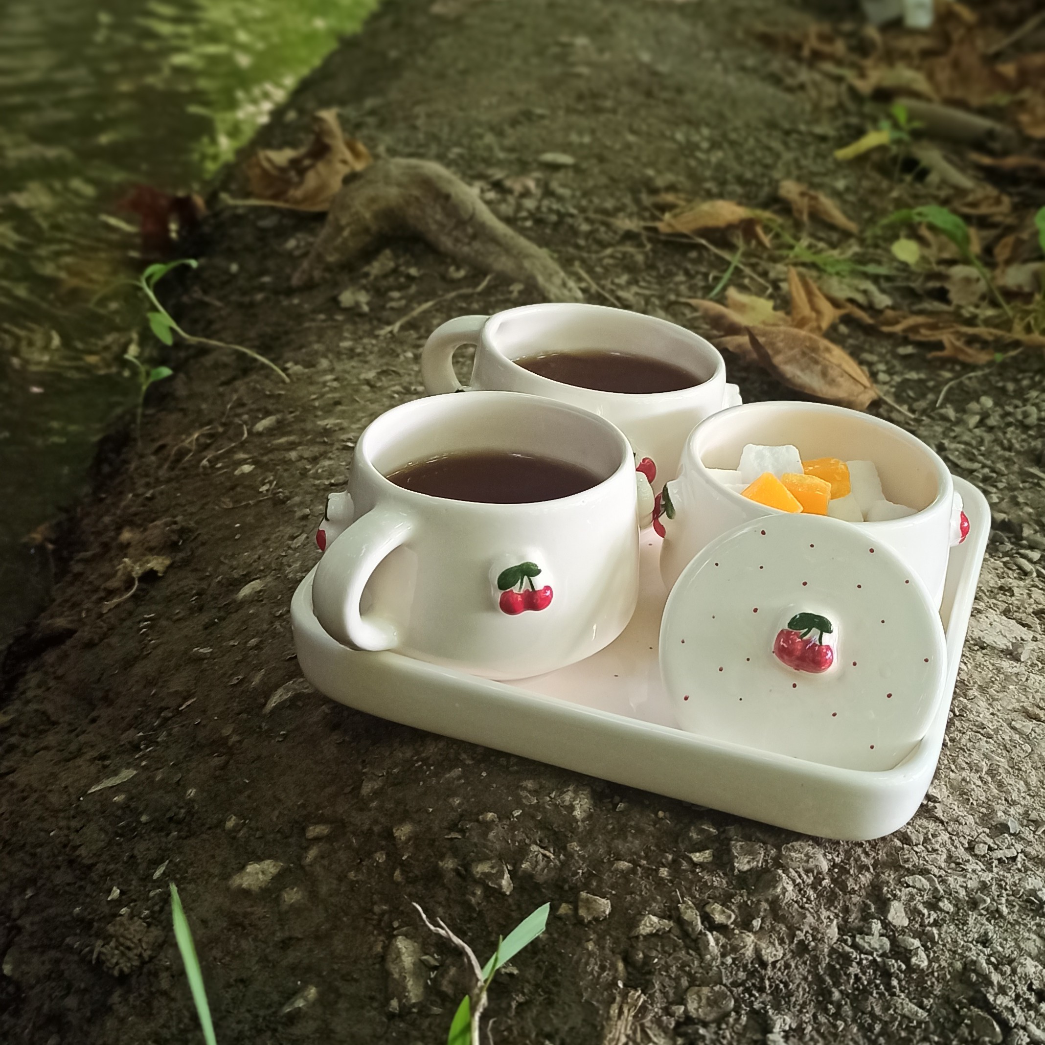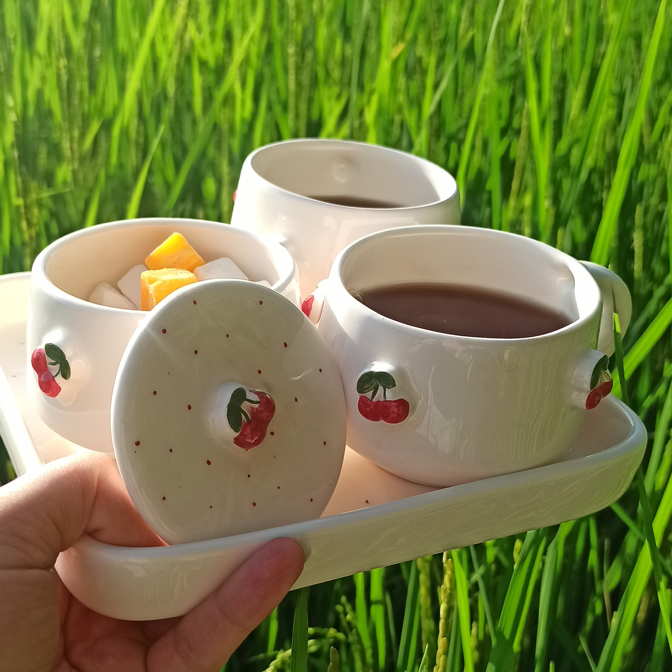 ست دو نفره چایخوری سرامیکی، طرح داخل سینی خالدار قرمز هست، محصولی بسیار شیک، آلبالو ها برجسته،قندان درب دار، برای هدیه بسیار مناسب ،قابل شستشو ، در دمای بالای کوره پخت شده و لعاب بدون سرب هست. کیفیت کار بالا بوده و باخیال راحت خرید کنید.