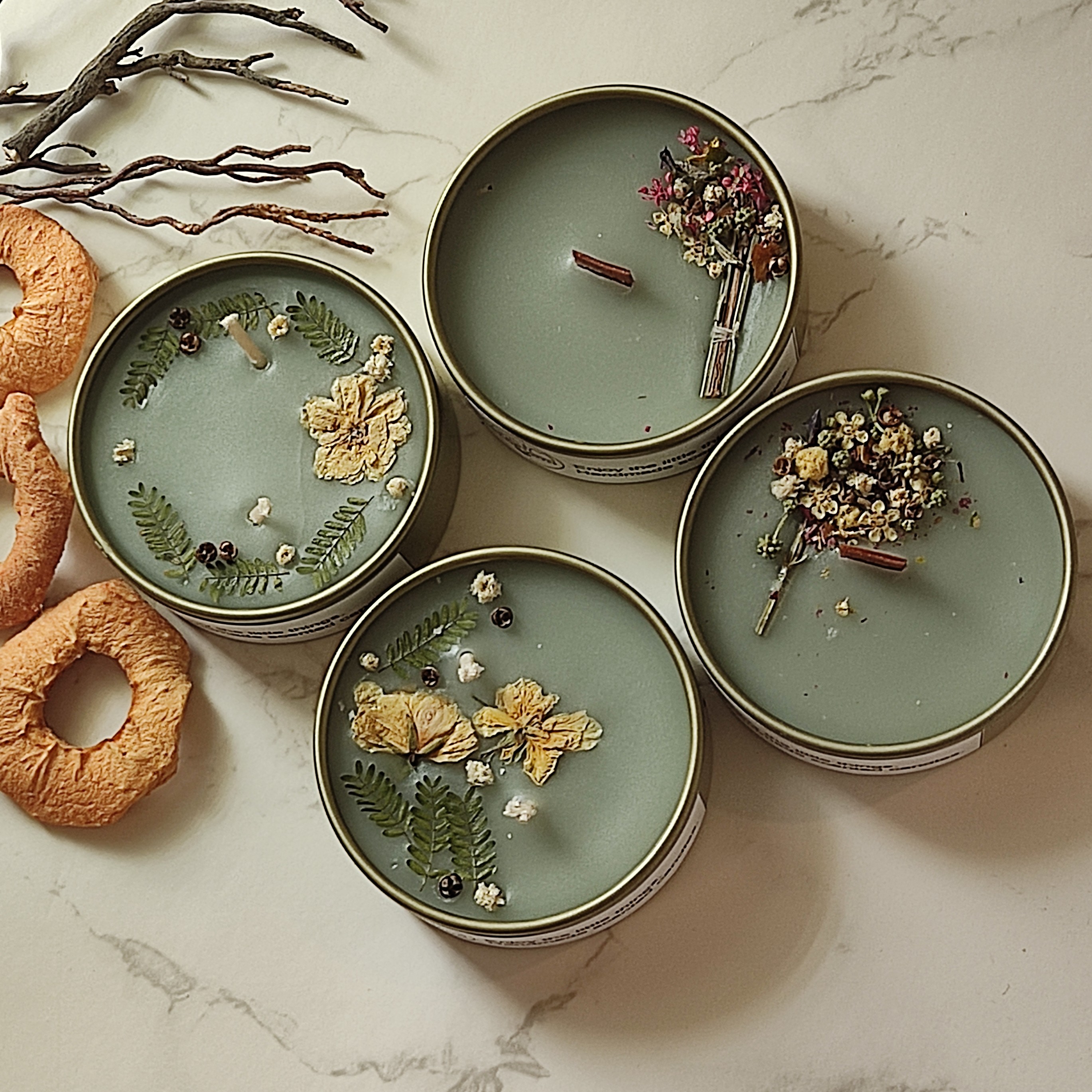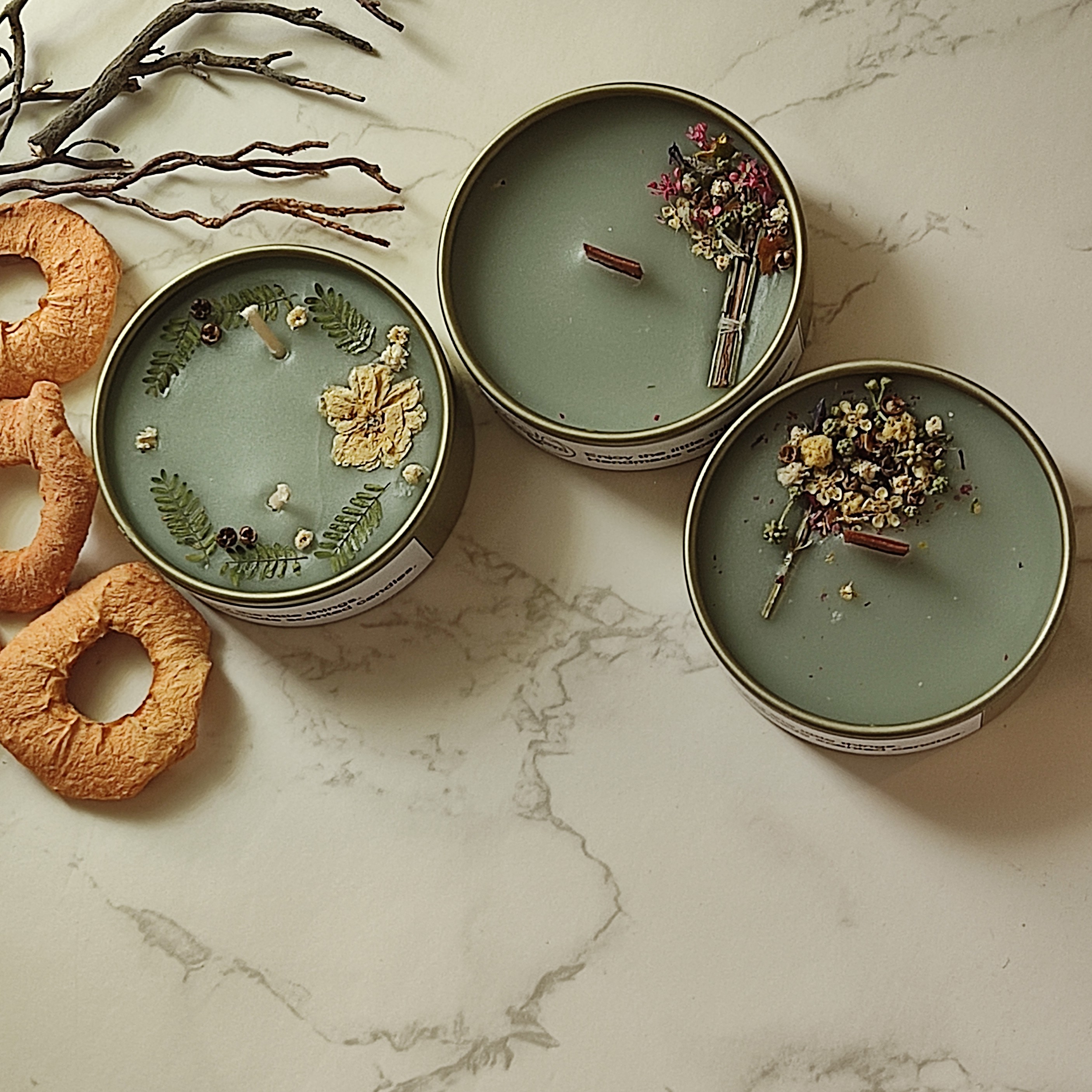 شمع معطر با رایحه سیب سبز با رنگ زیبای دلنواز و تزیین گل