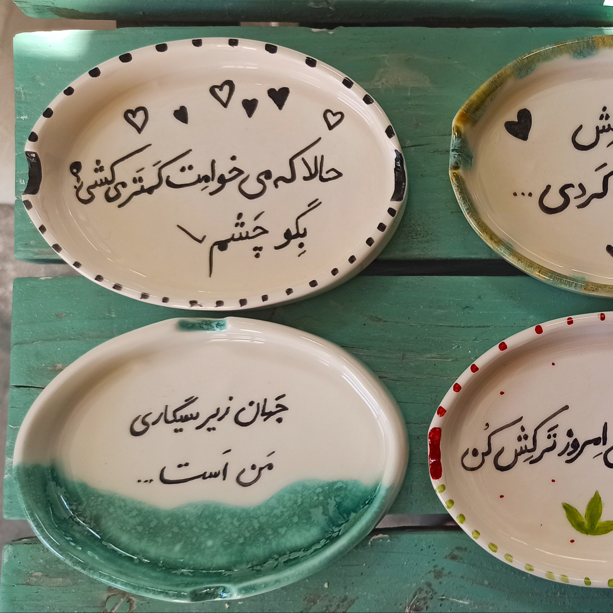 زیر سیگاری ها ی سرامیکی در طرح های متفاوت، همگی دستنویس هستند با جمله های متنوع، فروش به صورت تک و عمده، قابل سفارش با طرح انتخابی شما،