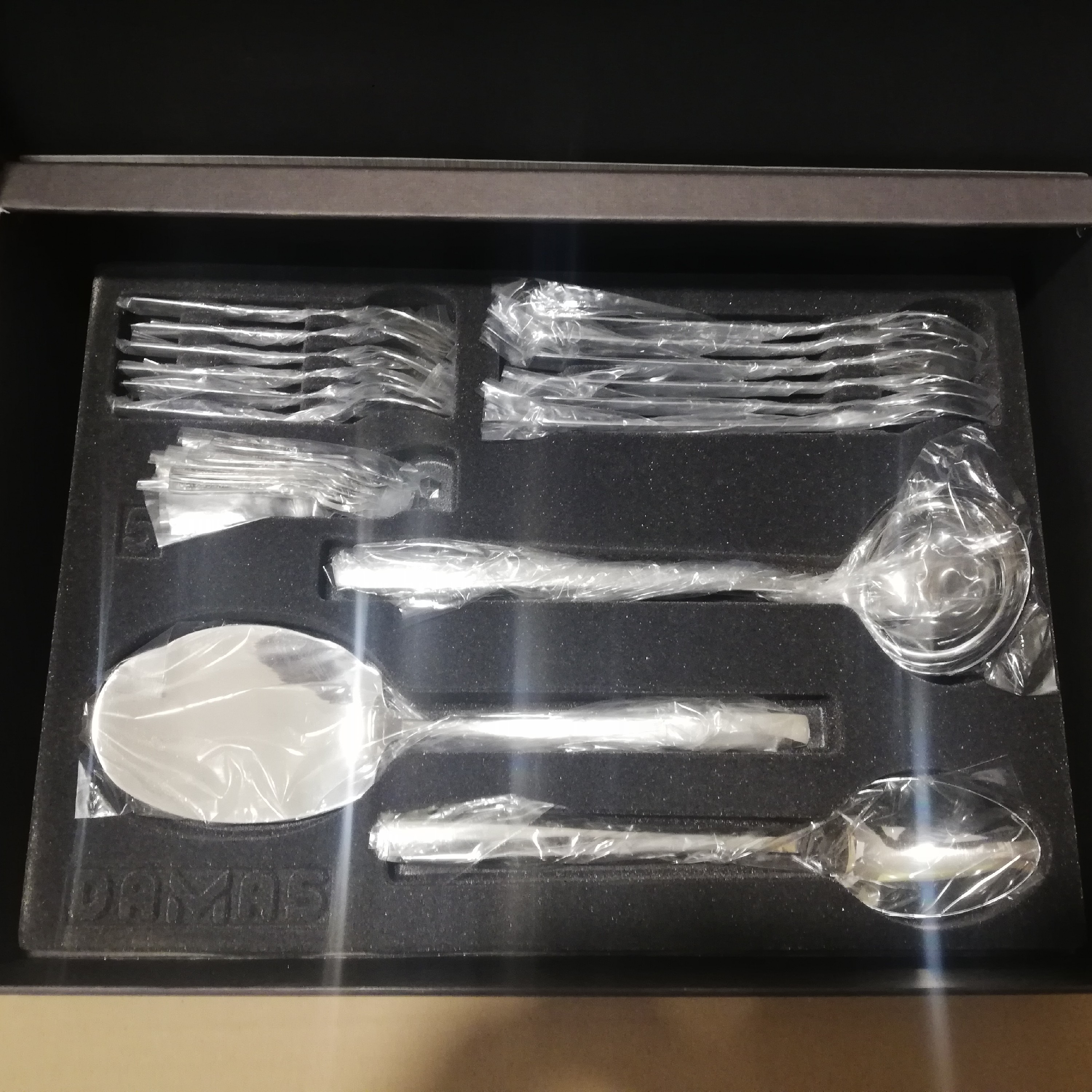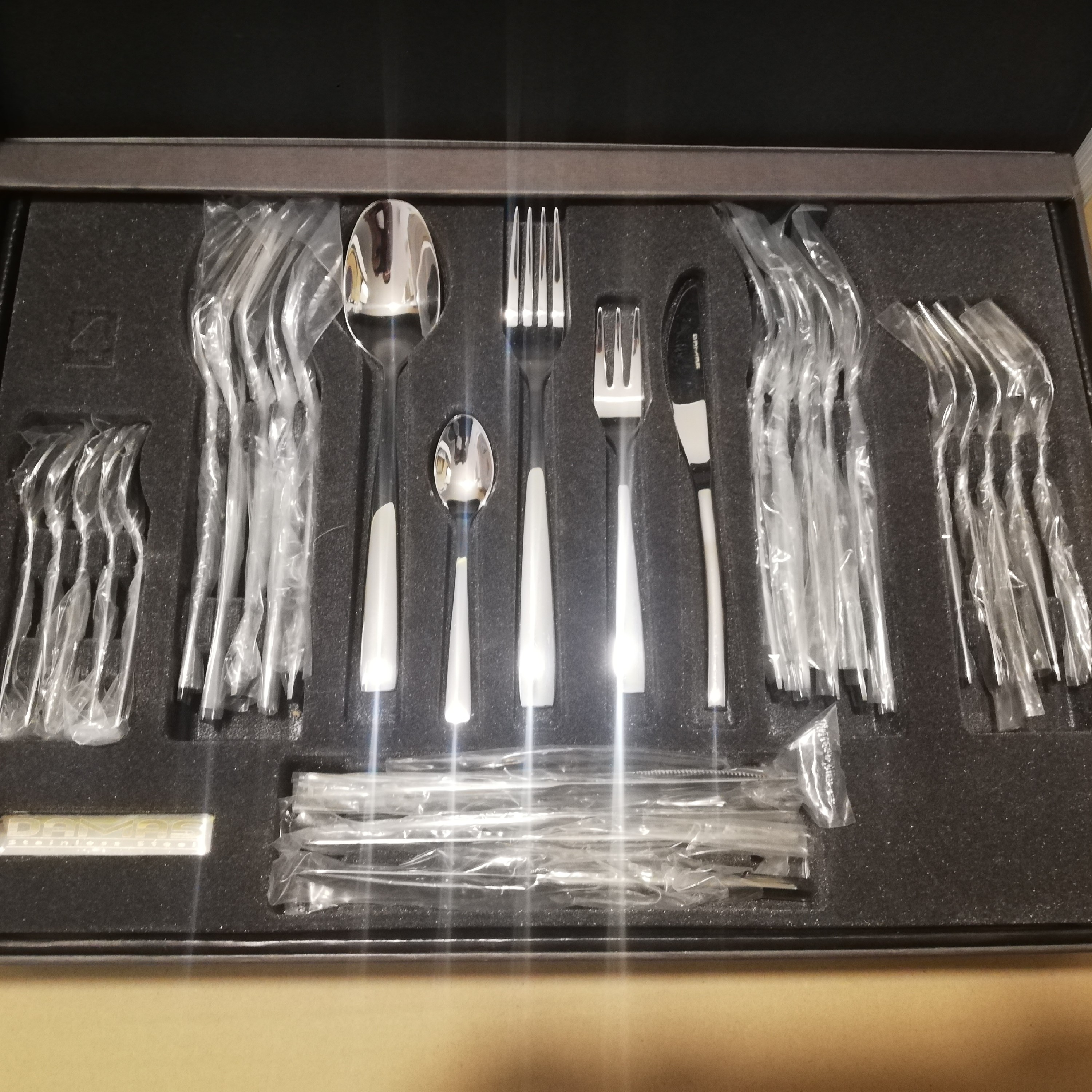 سرویس قاشق چنگال 6نفره 51تکه تمام استیل 18.10 برند damas استیل صخیم و زد زنگ دارای جعبه کادویی زیبا دو طرح سلیا و سورنا 6قاشق غذاخوری /6چنگال غذاخوری 6چنگال دسر/6کارد دسر /6قاشق دسر 6قاشق چایخوری /6قاشق شربت خوری 6قاشق قهوه خوری 1کاردک بزرگ /1ملاقه بزرگ /1قاشق خورش خوری