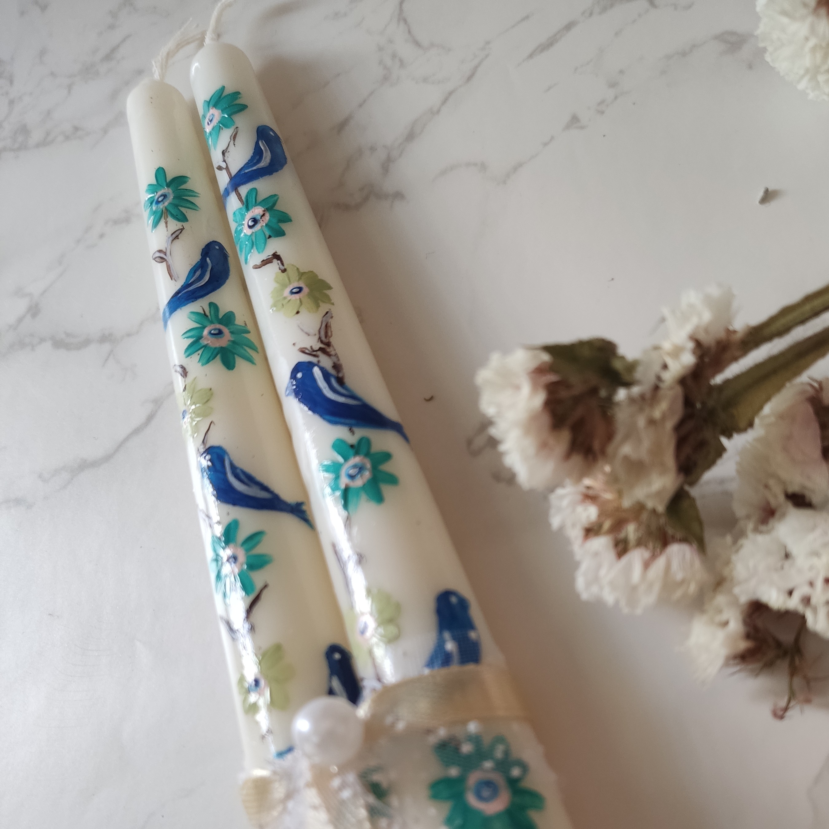 شمع نقاشی دست کل و مرغ آبی مبلمونسرا مدل 284065