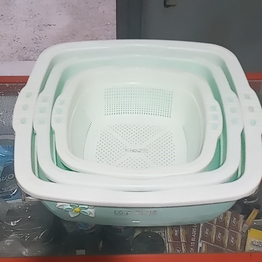 آبکش ولگن مربع سه عددی 6 پارچه گلدار ،لگن دررنگ های آبی فیروزه ای وکرمی وسفید ،رنگ آبکش سفید بسیار زیبا ،با کیفیت ،کاربردی