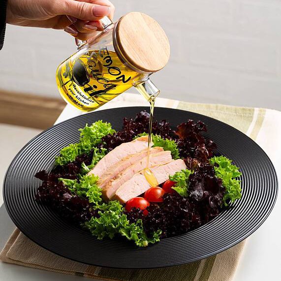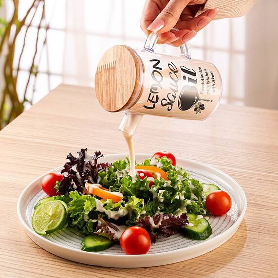 🫒روغن ریز و آبلیموریز اکرولیک 🫒 ⭐️جنس اکرولیک شفاف درجه یک 📏ارتفاع 12 سانت ⭐️درب چوب رابر
