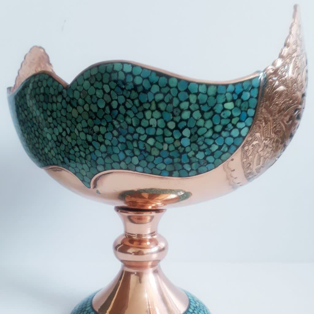 کشکول مدل فیروزه کوبی سایز 3،جنس مسی و سنگ فیروزه اصل نیشابور مبلمونسرا مدل 275292