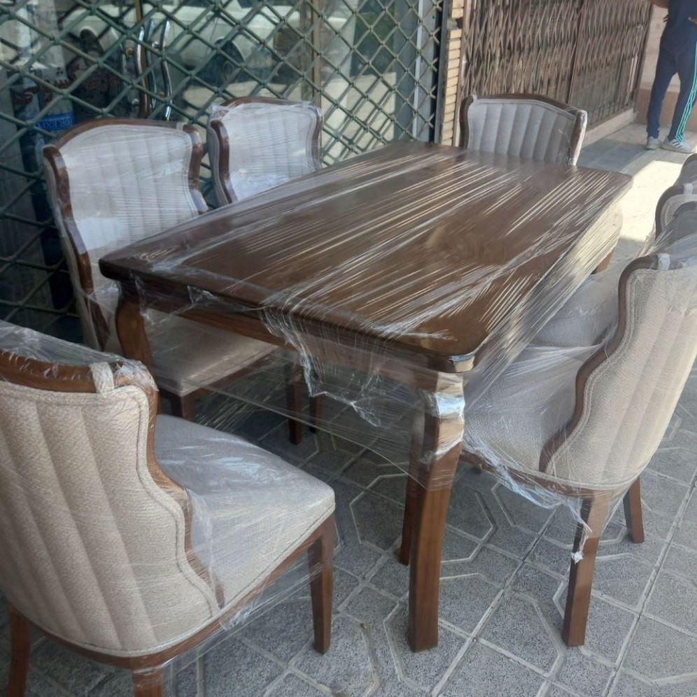 میز ناهارخوری شش نفره ارسال به سراسر کشور ارسال با چاپاربه صورت انجام میشه انتخاب رنگ چوب و پارچه به سلیقه ی مشتری عزیز زیر قیمت نمایشگاه از کارگاه مون خرید کنین