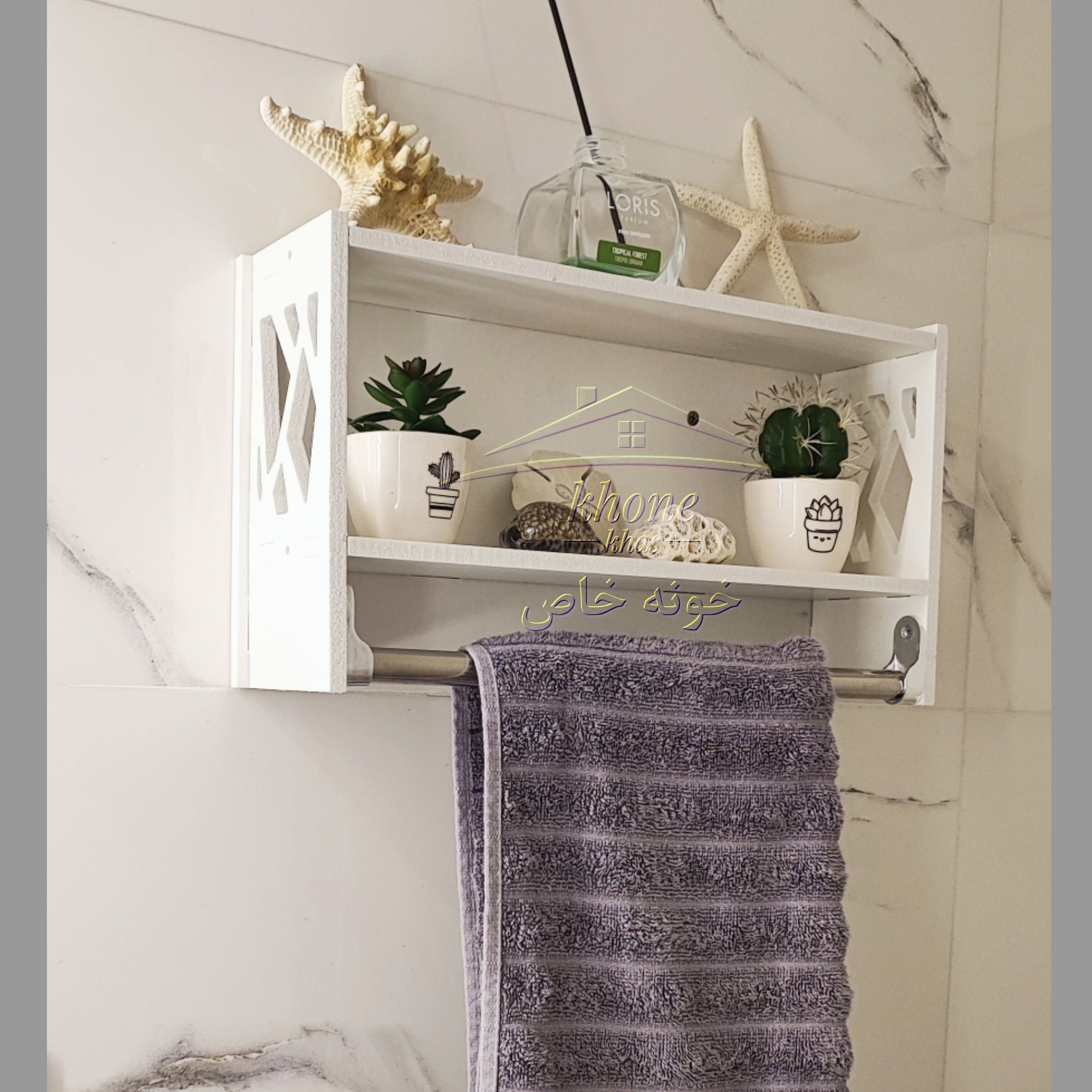 شلف باکس سرویس بهداشتی با آویز حوله استیل مبلمونسرا مدل 258790