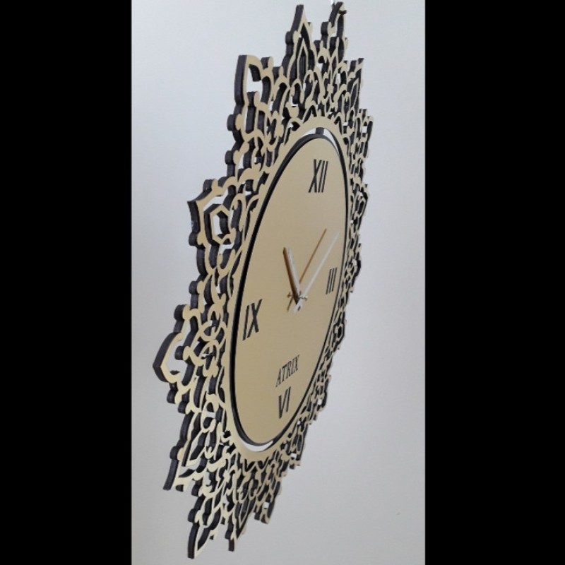 ساعت های دیواری بزرگ ، شکوه و جلوه خاصی به دکوراسیون داخلی منزل می بخشد و علاوه بر مطلع کردن ما از زمان ، بعنوان یک اثر هنری و عنصر دکوری زیبا در فضای خانه بکار می رود. ساعت طرح مشبک جنس بدنه از مولتی استایل است و موتور آرامگرد و بیصدا دارای تنوع رنگ ، قابلیت جابه جایی آسان است.