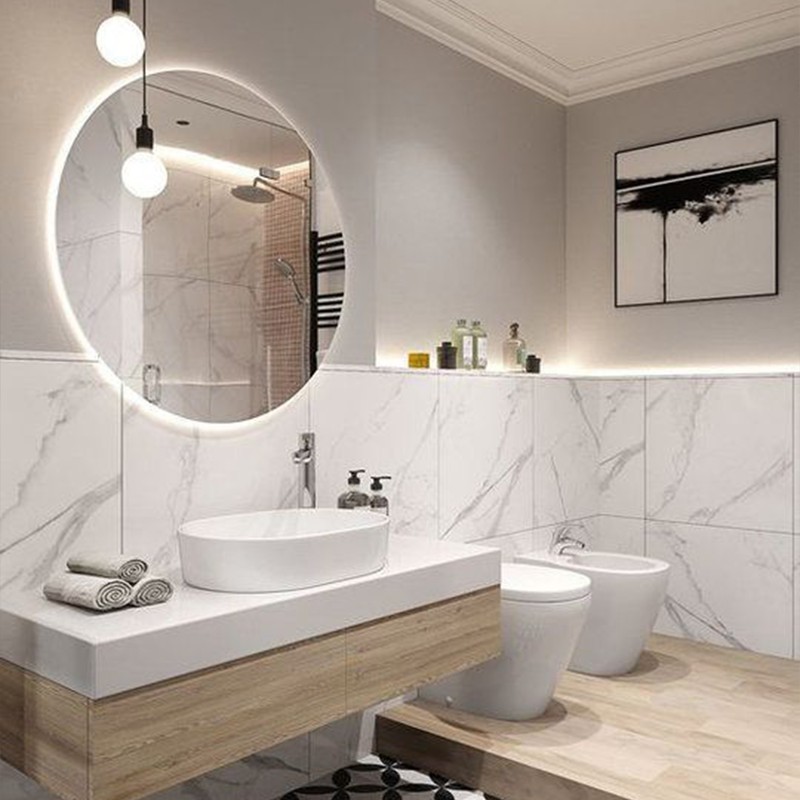 آینه Back Light مدل AM07 تلفیقی از نور و آینه میباشد و باعث میشود علاوه بر ویژگی آینه بودن محصول به عنوان روشنایی در سرویس بهداشتی استفاده شود . بازتاب آینه به دلیل آبکاری خوب از کیفیت بسیار بالایی برخوردار است . ابعاد محصول 60x60 می باشد. ولتاژ ورودی برق مورد استفاده در این بک لایت 220 ولت است که به شما این امکان را میدهد بدون نیاز به مبدل مستقیما به برق شهری متصل نمایید.