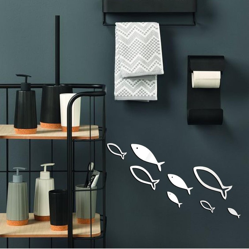 استفاده از آینه در منازل لوکس از گذشته ها تا به امروز متداول بوده است اگرچه آینه به شکل کاربردی و با انواع طرحها و قابها در منزل استفاده می شود , ولی افرادی که به دنبال داشتن فضاهایی متفاوت هستند , از آینه به عنوان یک عنصر دکوراتیو در فضا سازیها استفاده می کنند . تلفیق نور و آینه می تواند حس متفاوتی را در فضای شما ایجاد کند و با کمترین هزینه تغییری شگرف در منزل شما بوجود آورد همچنین به واسطهی متریال با کیفیتی که در تولید این محصول به کار رفته، میتوان از آن در محیطهای مرطوبی مانند سرویس بهداشتی و حمام نیز استفاده کرد و از دوام آن در مقابل رطوبت، اطمینان خاطر داشت .این مجموعه شامل 8 عدد ماهی آینه ای از جنس پلکسی گلس فوق سبک تولید و در دو رنگ آینه نقرهای و آینه طلایی عرضه می شود.