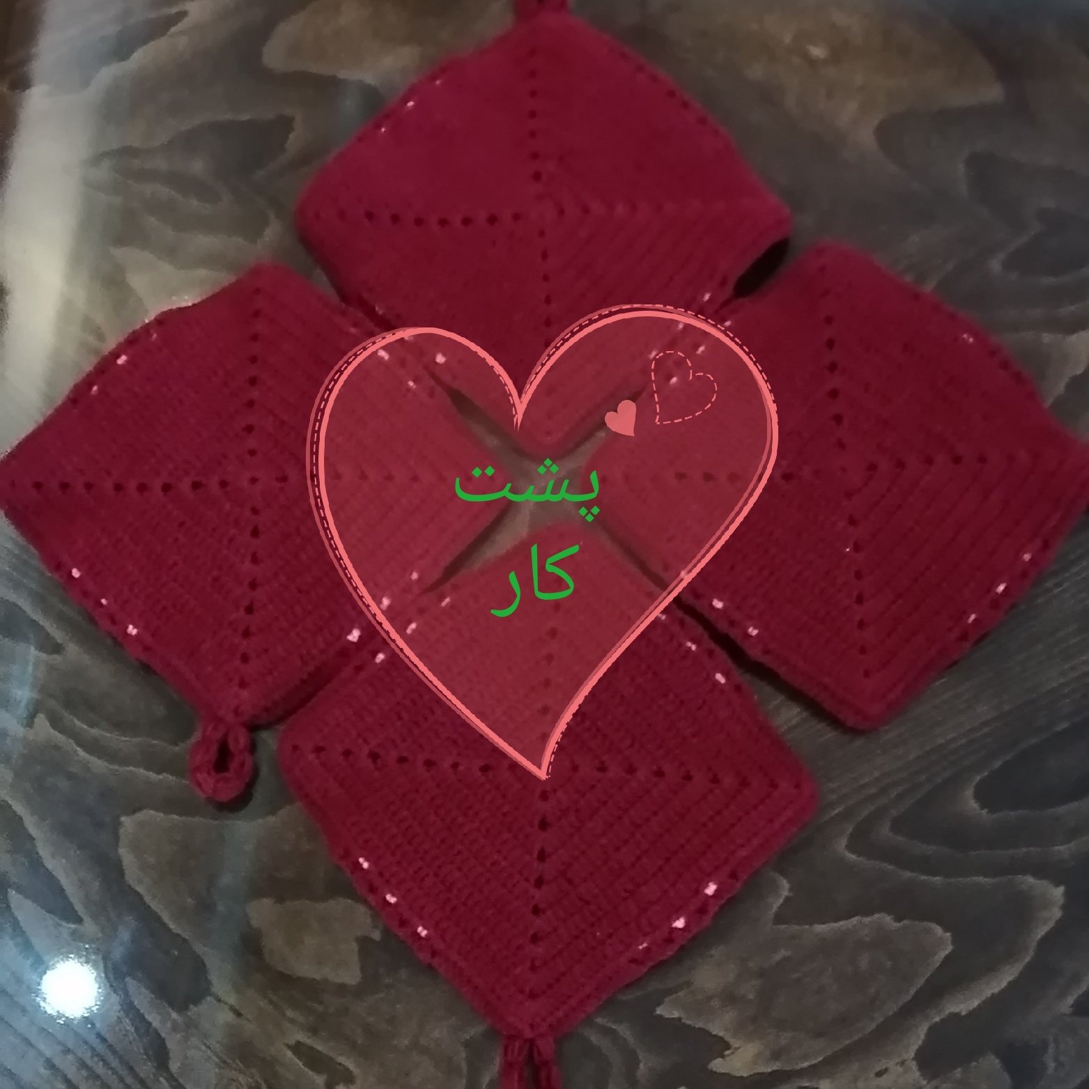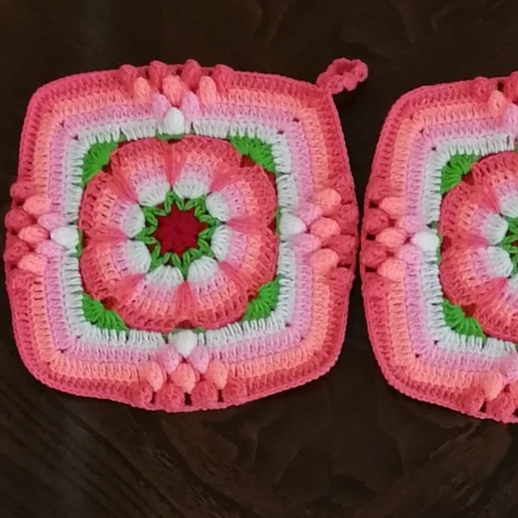 این دستگیره بافته شده با کامواهای آکریل تاپ ایرانی با کیفیت و بدون پرز دهی ابعاد 17 در 17 سانت الی 19 در 19 سانت مناسب آشپزخانه و جهیزیه عروس قابل سفارش در رنگهای دلخواه شما