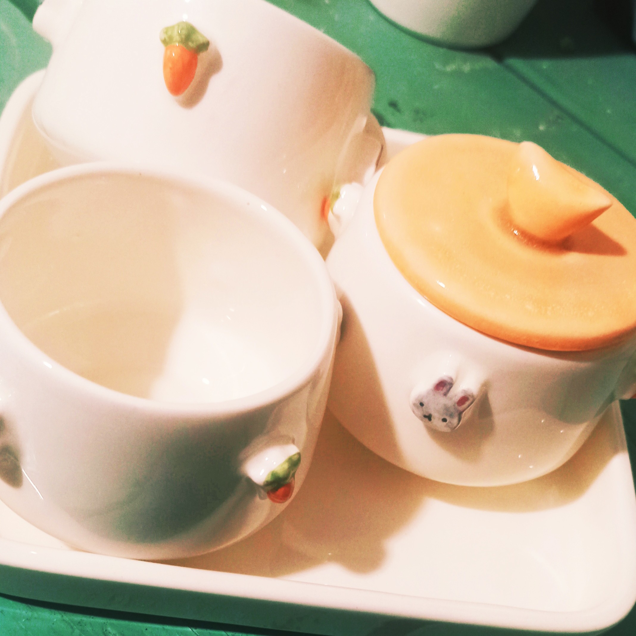 ست چایخوری خرگوش و هویج ، نقش ها برجسته هستند، سینی مربع ،دو عدد فنجان و قندان درب دار، محصول از عکس بسیار زیباتر هست، تعداد محدود،مناسب هدیه دادن، لعاب باکیفیت و پخت در دمای مناسب کوره انجام شده است.سفارش عمده در طرح های مختلف پذیرفته میشود،