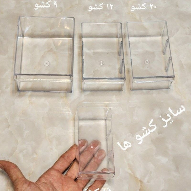 باکس اکرولیک دوازده کشو جنس استند چوبی اندازه کشو در عکس مشخص است ابعاد محصول : طول 35 سانتی متر ارتفاع 24 سانتی متر ...... ابعاد هر کشو : 7*12 سانتی متر